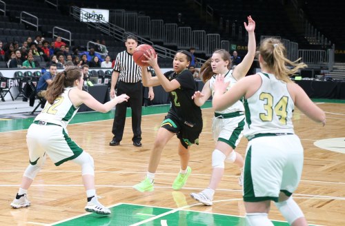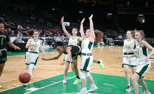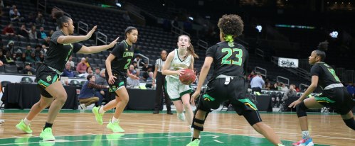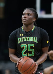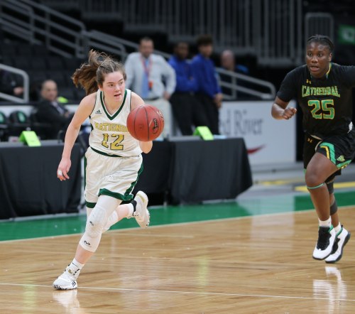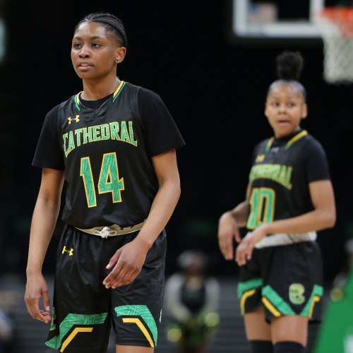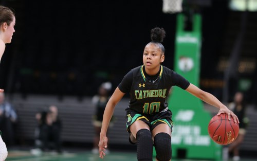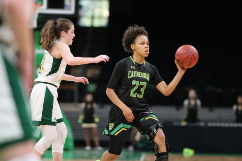 During the 11-point run, Cathedral had two inside scores from senior Mackenzie Daleba (18 points), plus fast break layups by Tayla Barros (12 points) and Ariana Vanderhoop (17 points). CeCe Gibson (7 points) finished the run of points with a three from the right side.