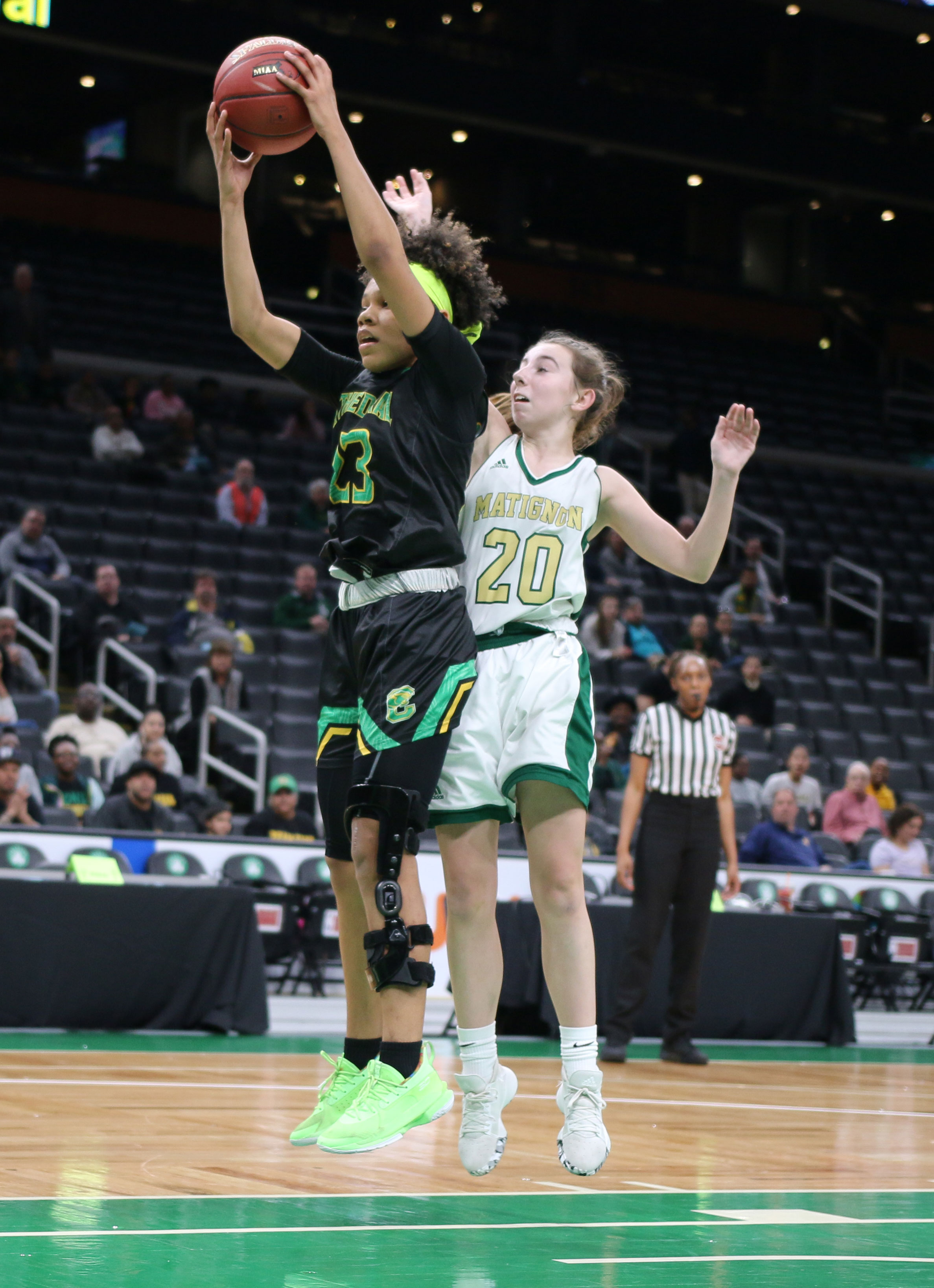 Matignon did not go quietly. A long-range three from senior Emma Found (12 points) had Matignon within fourteen, 42-28, entering the final quarter.