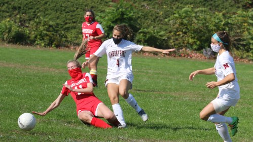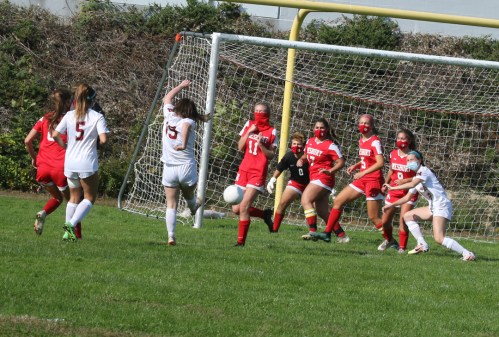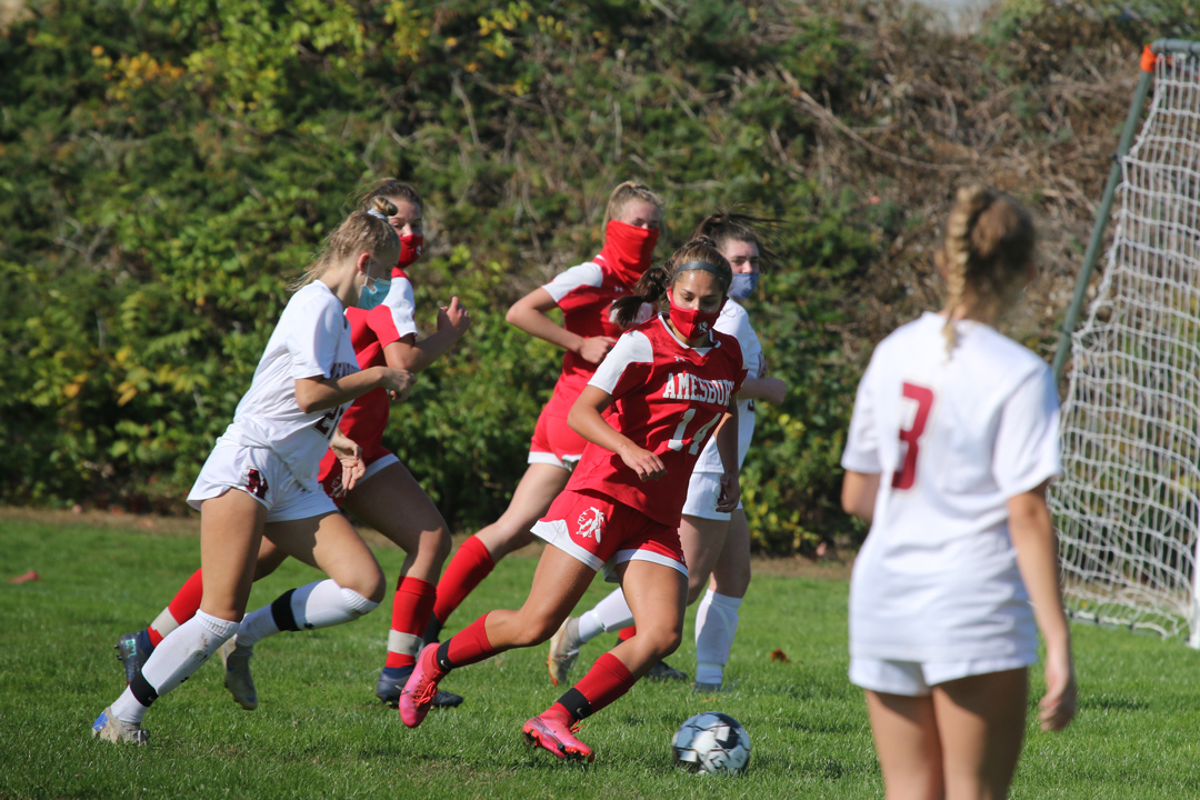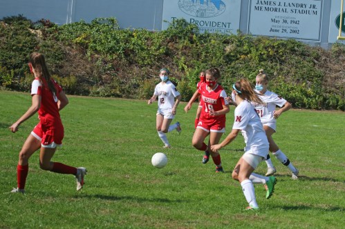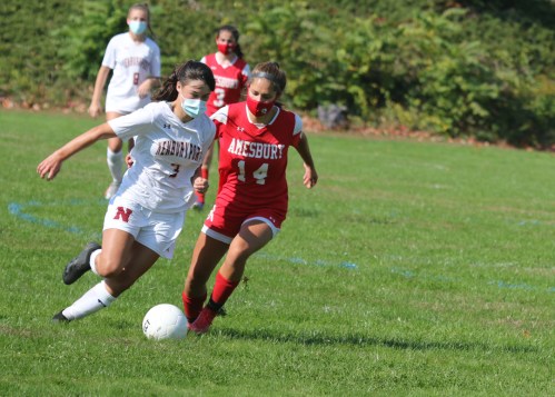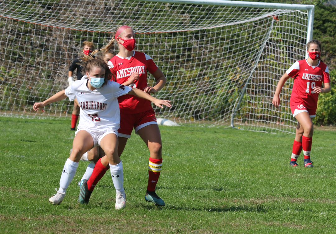 I have no doubt that “real” soccer folks are being, or would be, driven crazy by the rules that are in play for soccer in Massachusetts. The ever-blowing whistles are the most maddening part. I had to agree with Amesbury’s Sydney Aldrich when she said as the game was going on, “The game is now like field hockey and lacrosse.” BUT, and I have to keep reminding myself, they are playing!