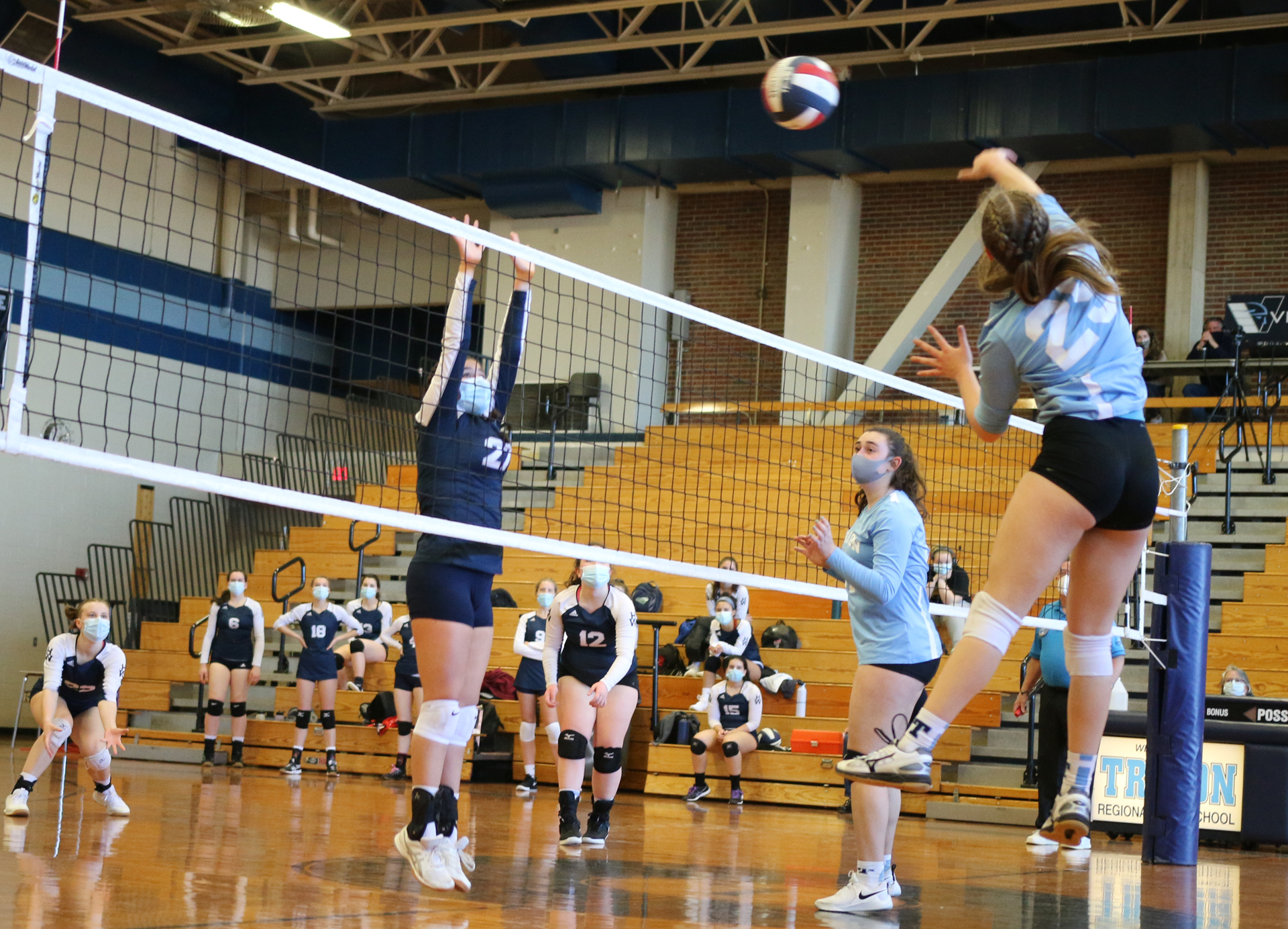 Fittingly however, Triton’s two big hitters (Mia Berardino & Evelyn Pearson) were set up on the next two plays for hits that would have been challenging for D1 college players to return and the Vikings had a 25-21 win……and the match.