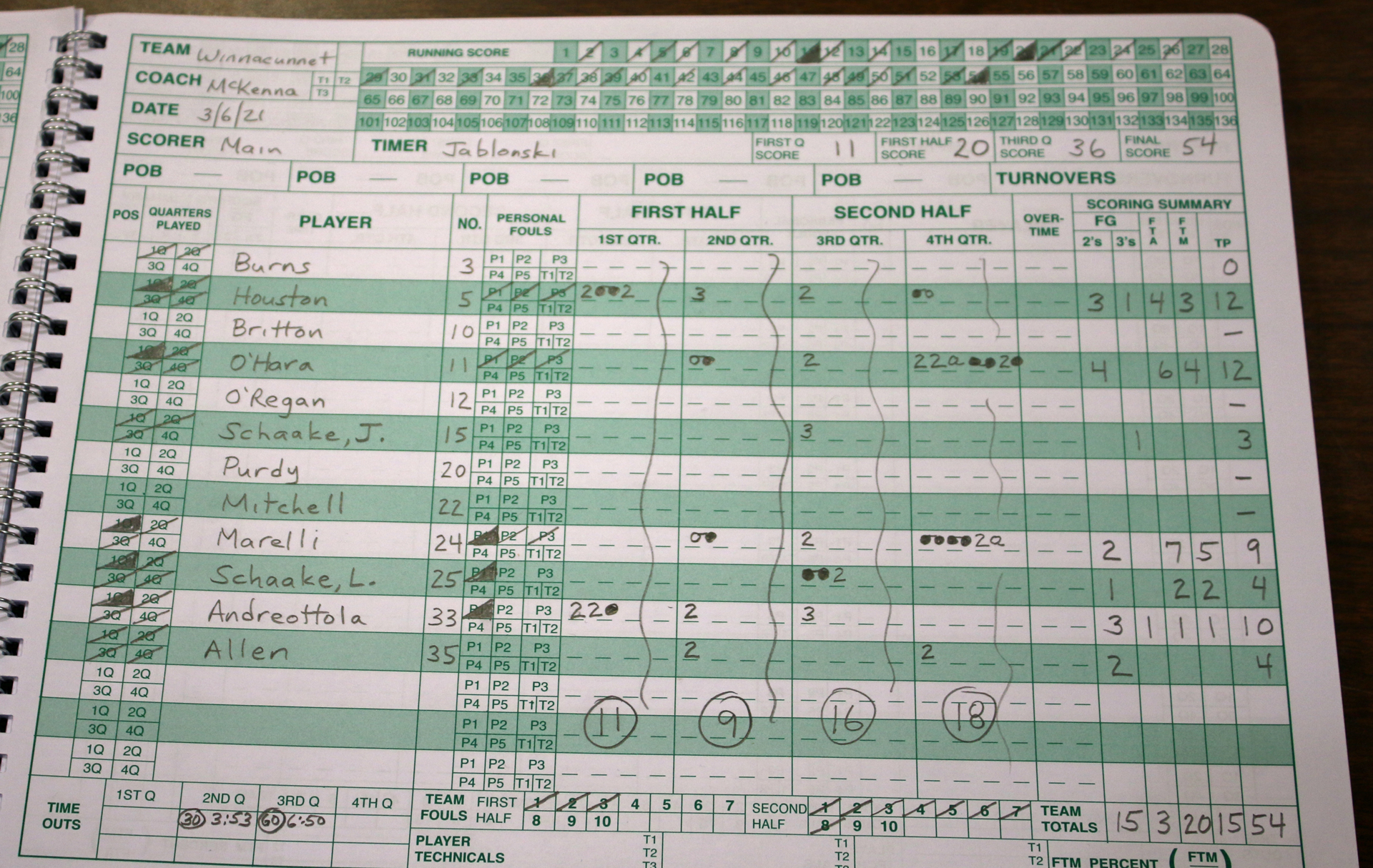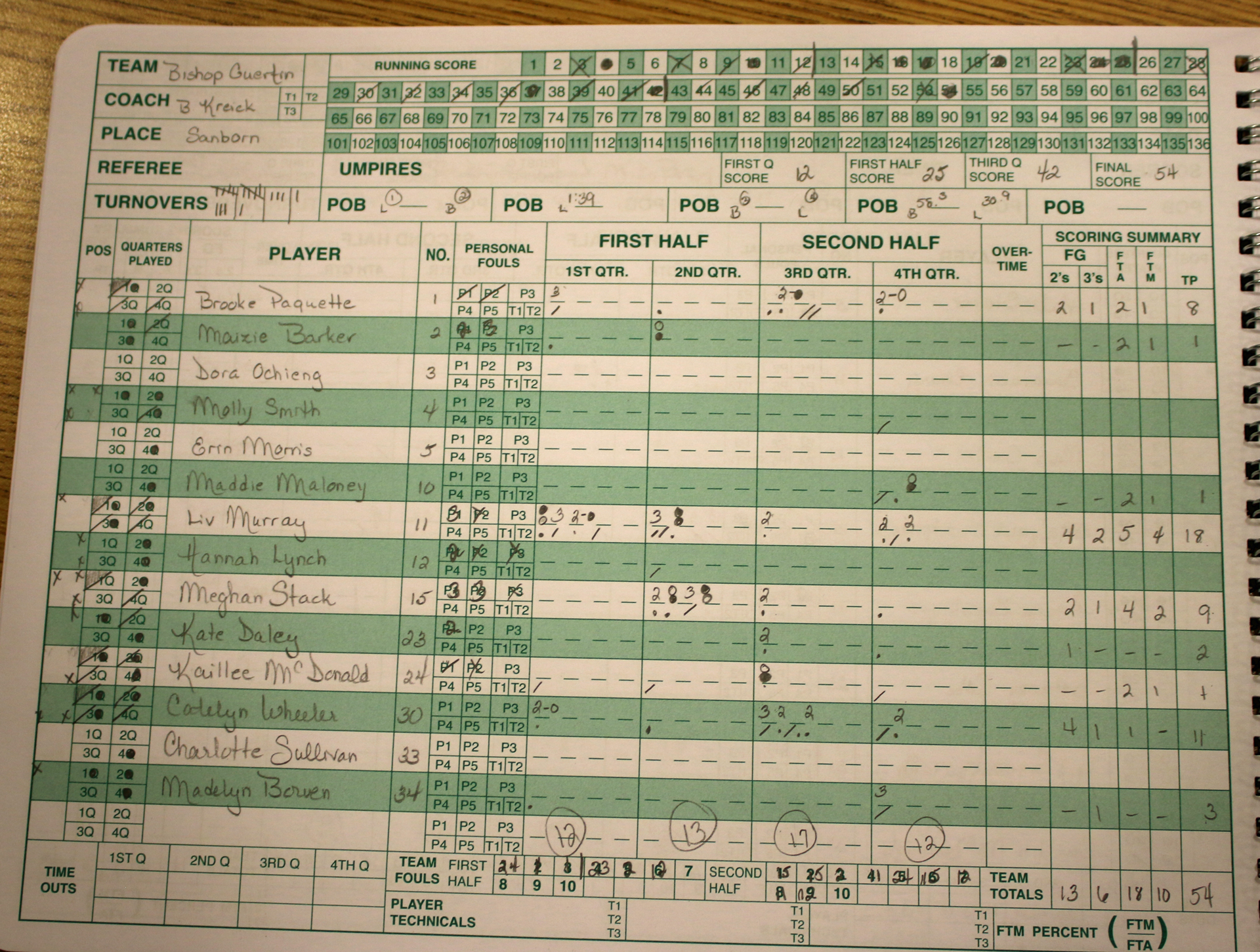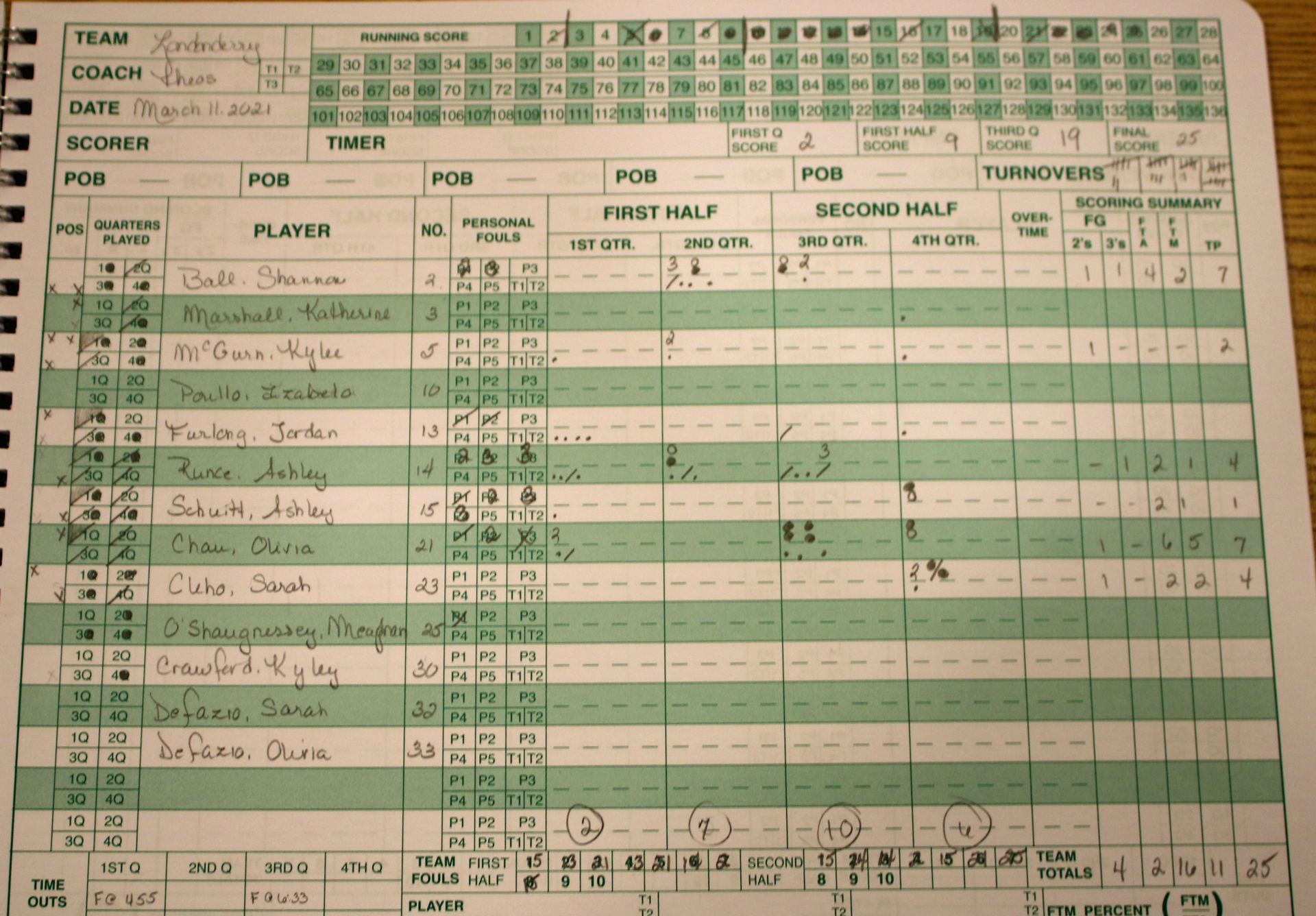 Molly ended up with twenty-five assists.