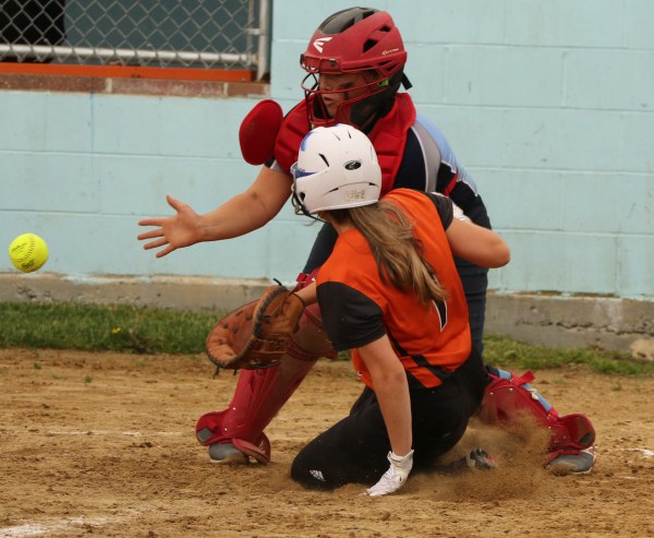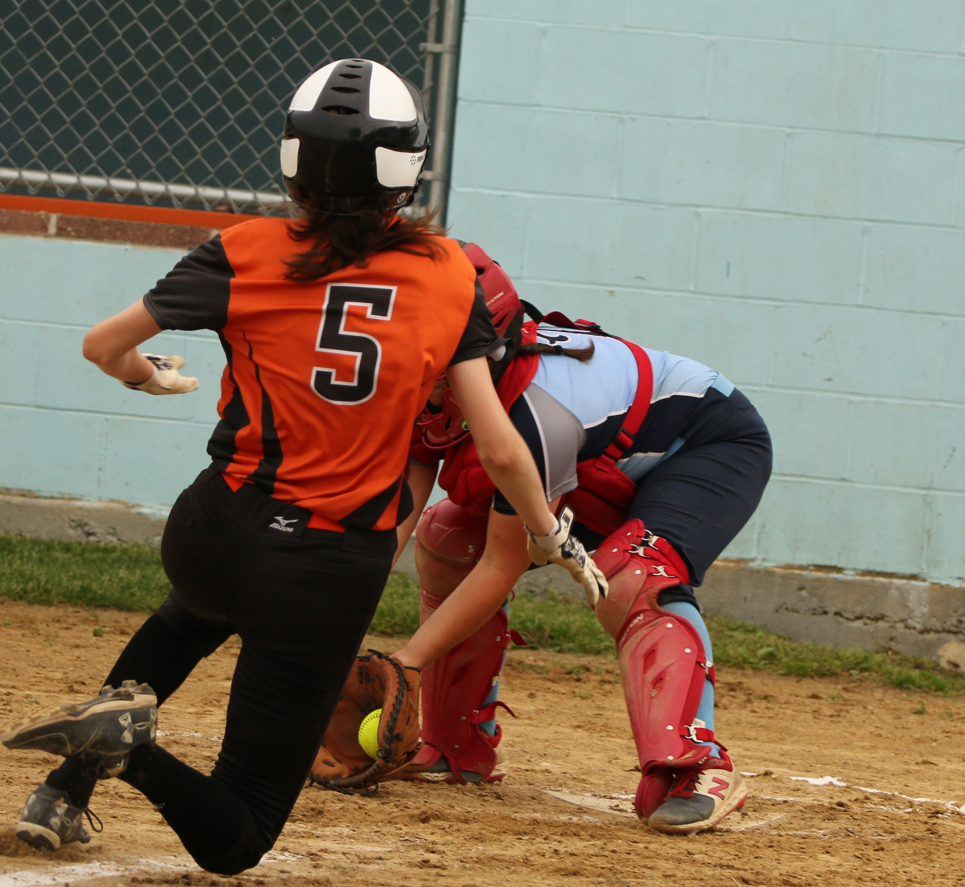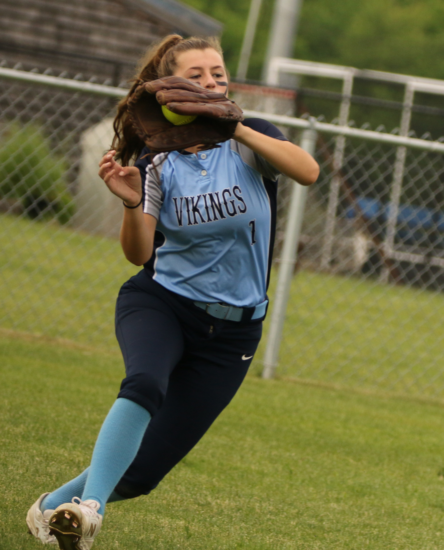 Nice catch by Case rightfielder Abby Sirois in fifth inning. Abby caught the ball and then went flying over teammate 2B Alexandria Yost…..but still held on.
