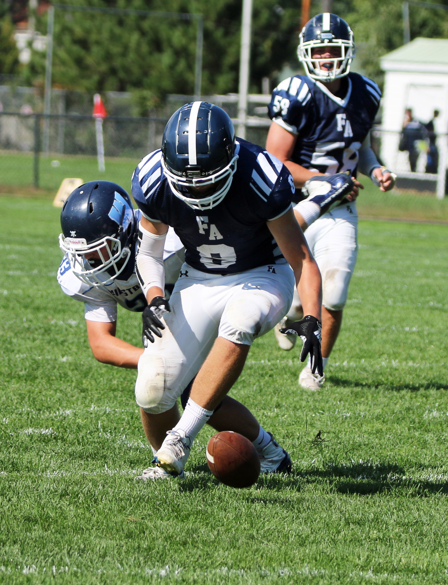 FA tried to pass again for the extra points, but Tom Lewis broke up the pass.