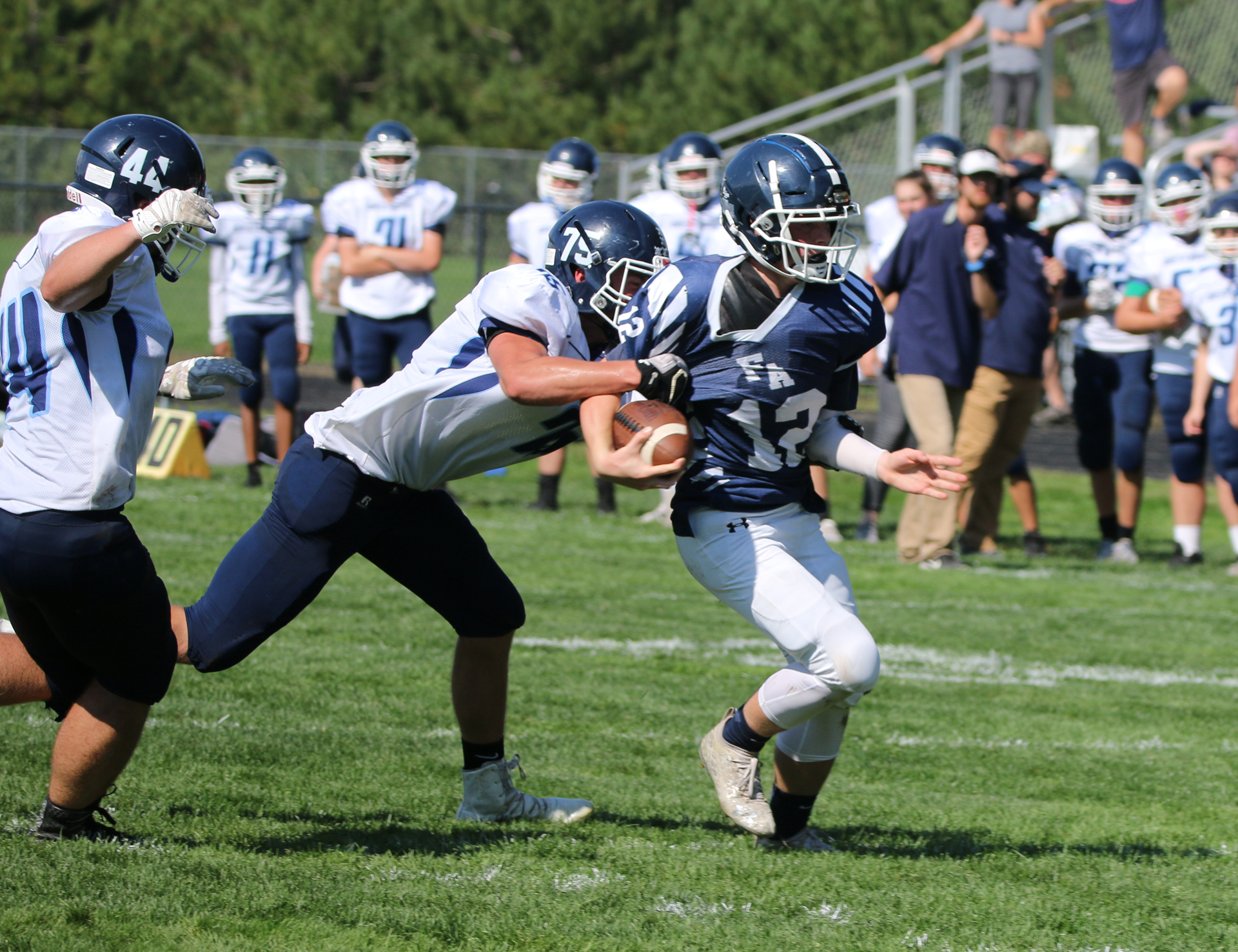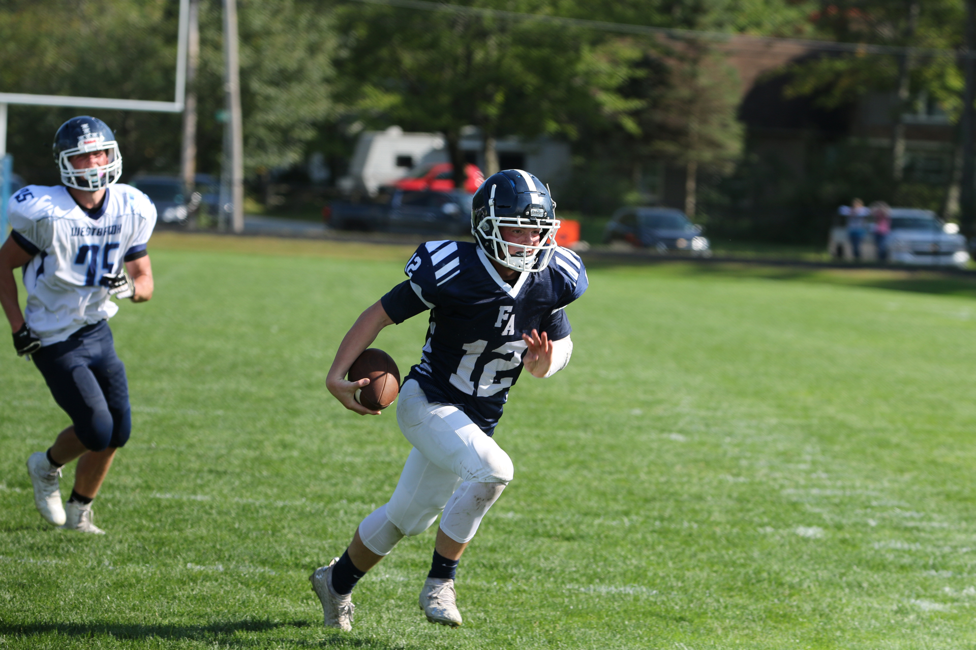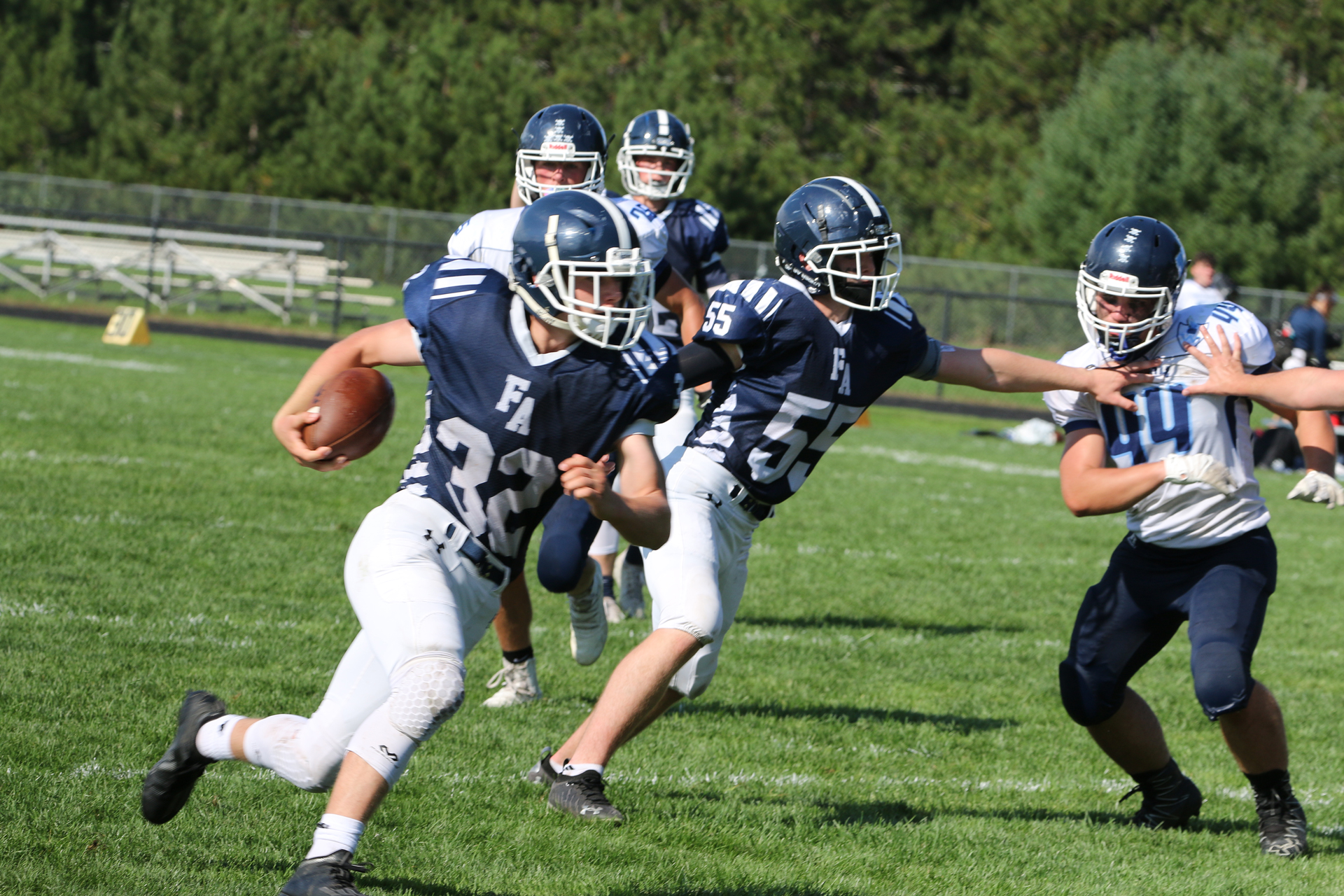 Quarterback Gunnar Saunders led the Raiders. The FA sophomore rushed for one score and passed to Caleb Micklon for two others. Gunnar also connected with Caleb for a two-point conversion.