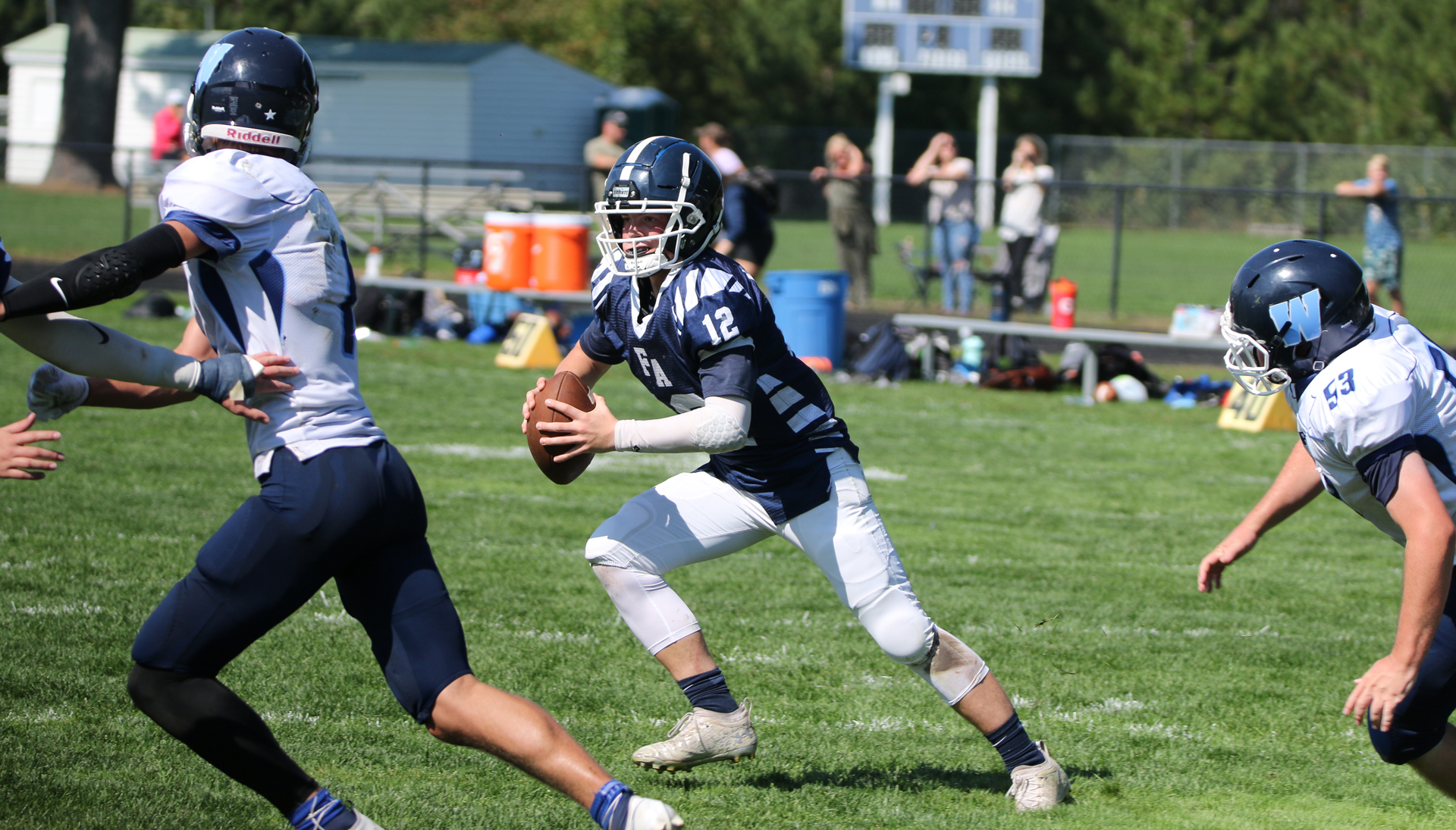 The home team had two first-down-producing runs from Hayden Fox and a scrambling one from Gunnar Saunders.  A face-mask call against the Blazers put FA on the Westbrook seventeen.