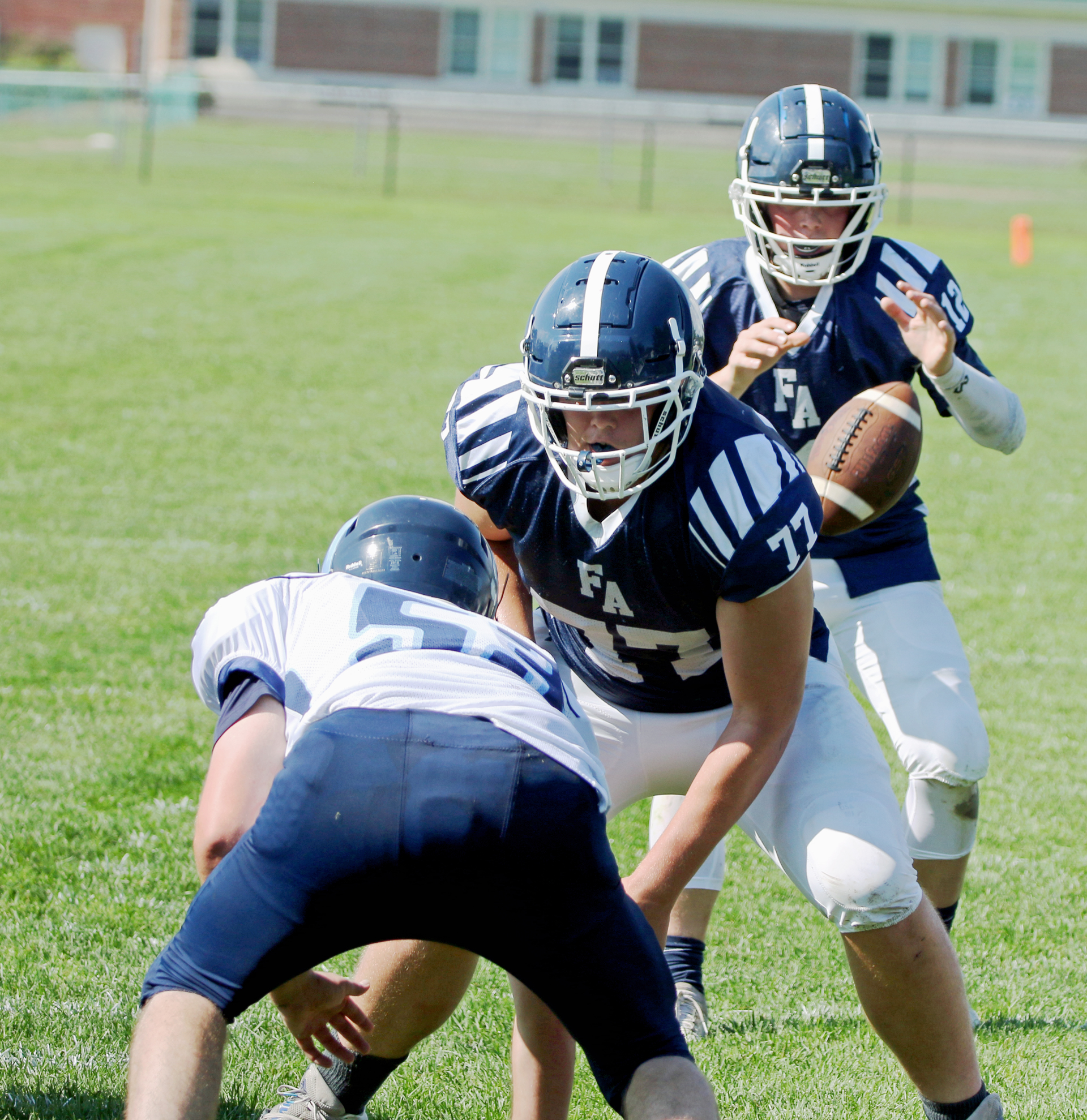 The home team had two first-down-producing runs from Hayden Fox and a scrambling one from Gunnar Saunders. A face-mask call against the Blazers put FA on the Westbrook seventeen.