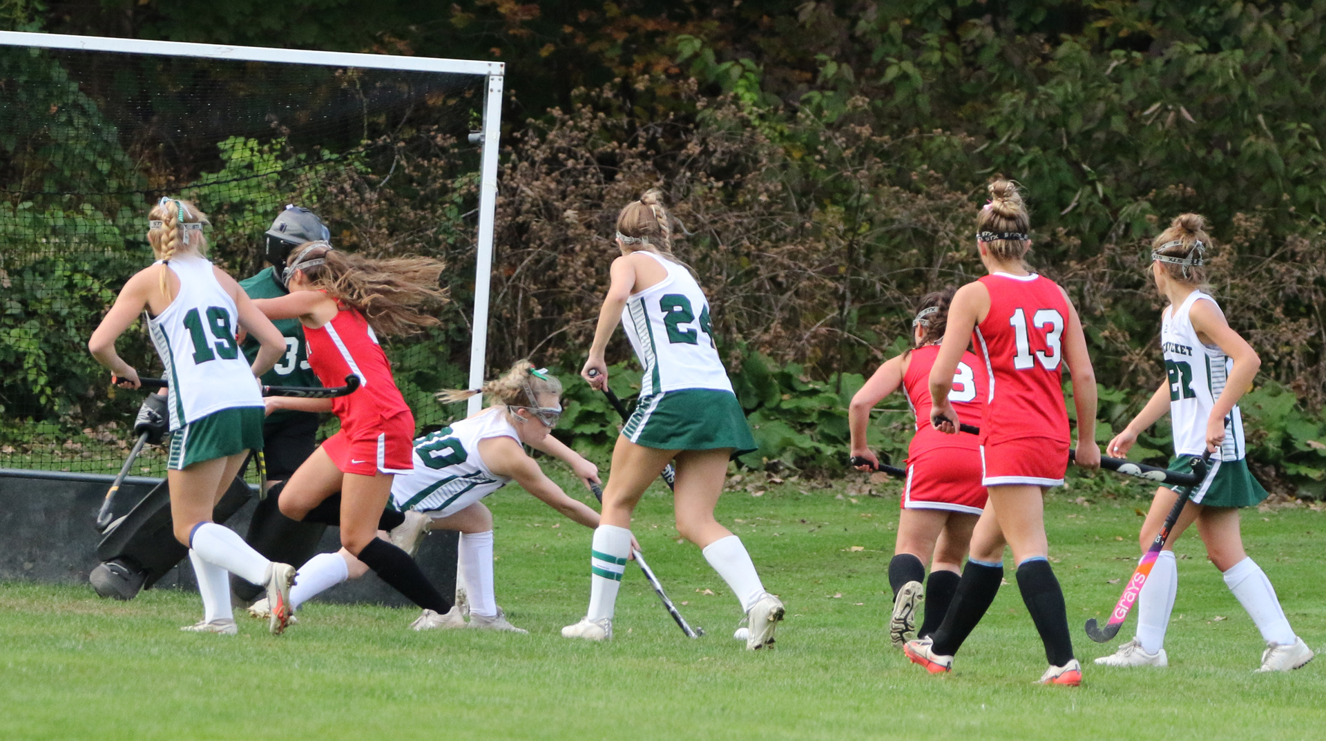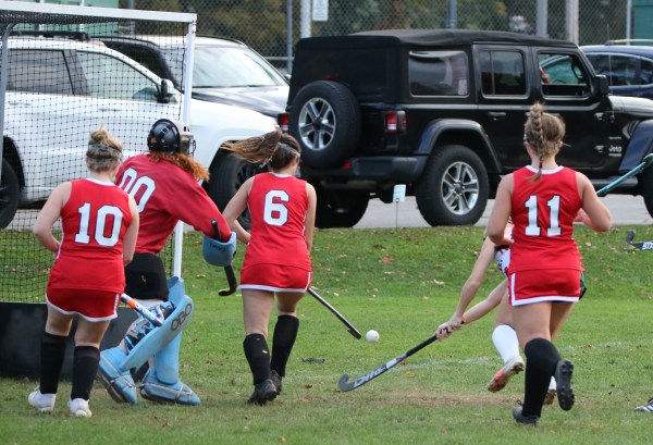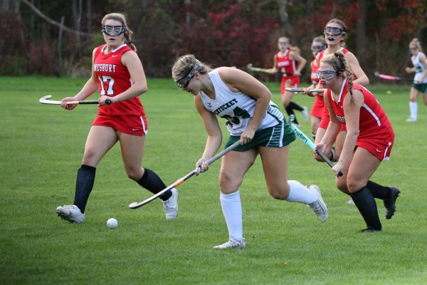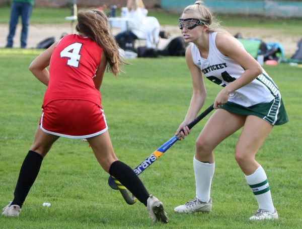 Pentucket goalie Charlene Basque didn’t see much action.  However, after Haley Dwight’s goal four minutes into the final quarter, Amesbury did apply some pressure and rang a shot off the sidebar.