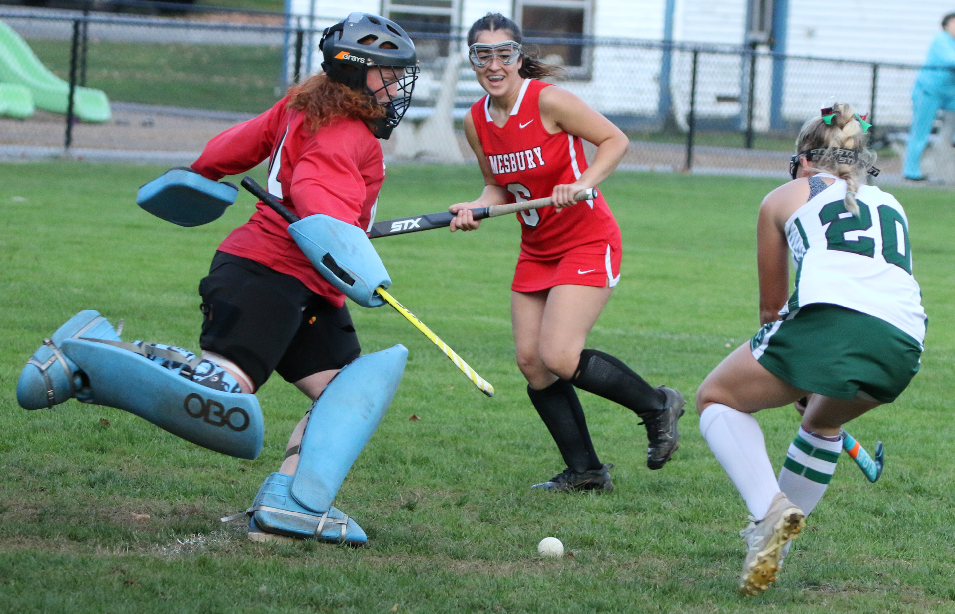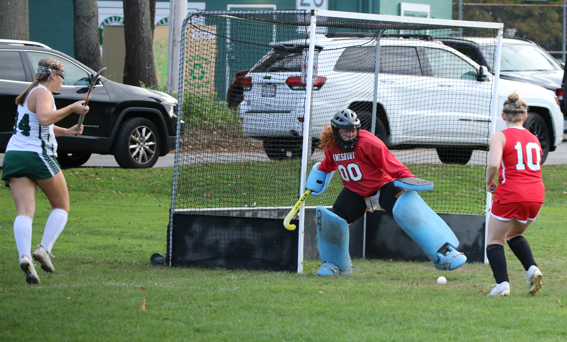 There was not much that Amesbury GK Nuala Arsenault could do about the goal.  “Their first one was rough to get to because the player shooting was on the opposite side,” said Nuala.