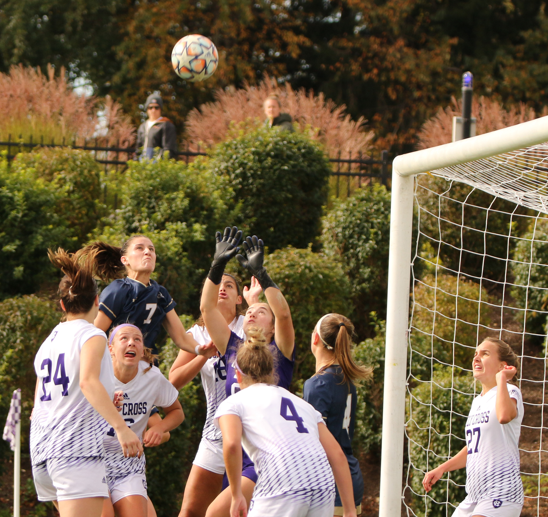 Navy freshman Alexa Riddle scored her seventh goal of the season today in the 16th minute of the first half. She took a long pass and broke in behind the Holy Cross defense. Alexa nearly had another goal in the final seven minutes of the game.