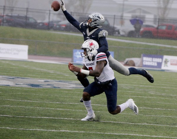 Three of the Spiders most notable defenders stepped up to limit the Wildcats. Tyler Dressler (7 solo tackles/8 assists), Tristan Wheeler (5 solo tackles/6 assists), and Kobie Turner (3 solo tackles/5 assists) often ruined UNH’s attempts to consistently move the ball.