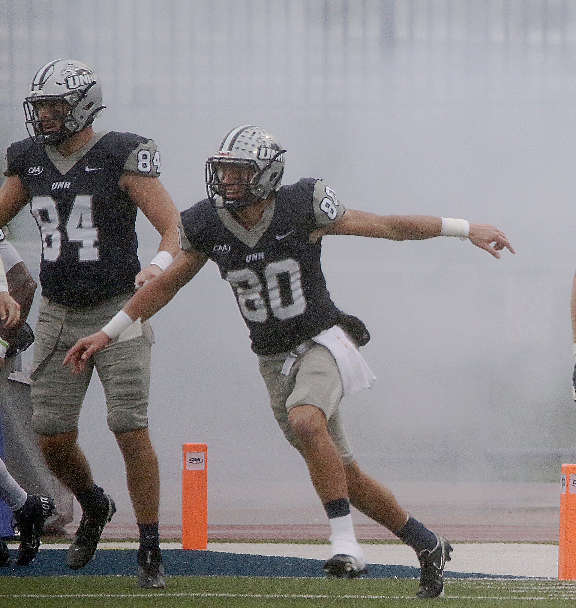 Freshman Isaac Seide led the UNH rushers with seventy-five yards on nine carries. He also scored his first UNH touchdown on a three-yard sweep to the right corner.