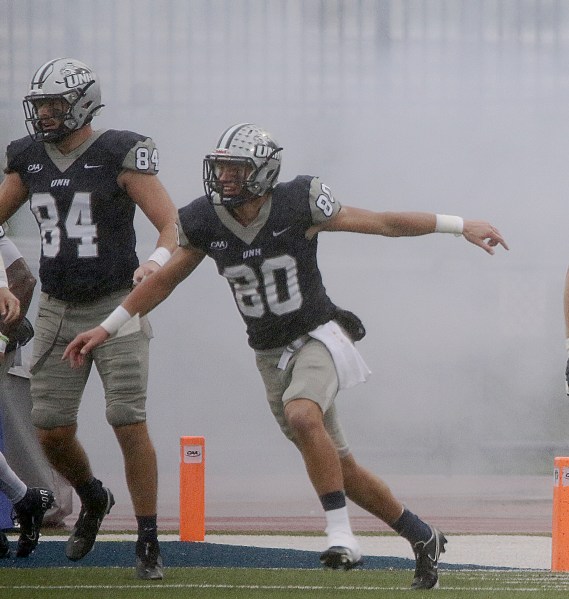 UNH quarterback Brody McAndew capped a five-play drive with a seven-yard score and UNH had their first lead of the game, 21-17, at 10:17 of the third quarter.