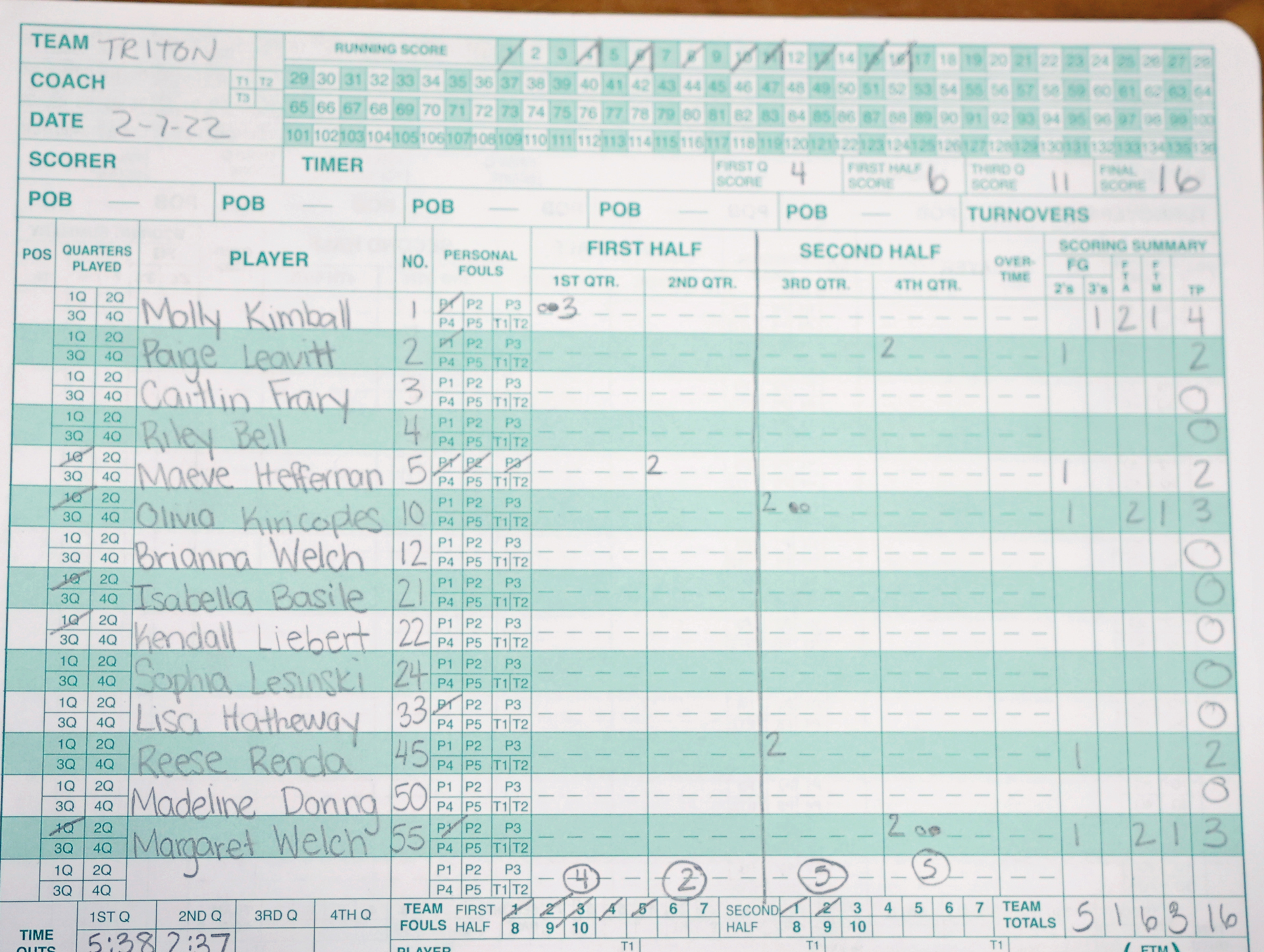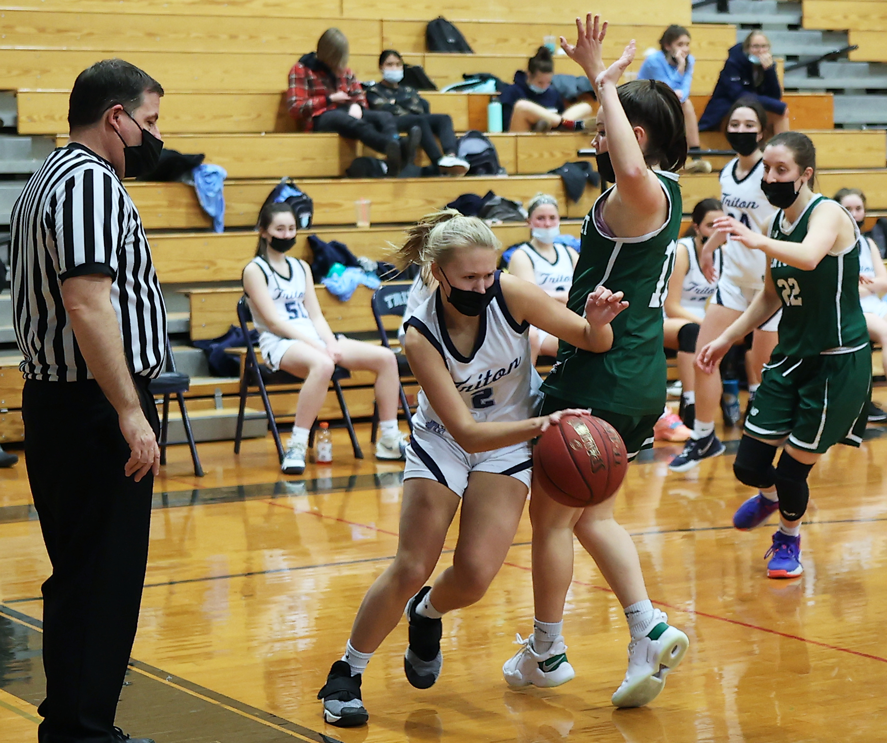 The Pentucket halfcourt defense was extra tough in the second quarter. Most of the Triton movement in the frontcourt was sideways with few direct lines to the hoop. Maeve Heffernan scored in the last minute for the only Vikings basket of the quarter.