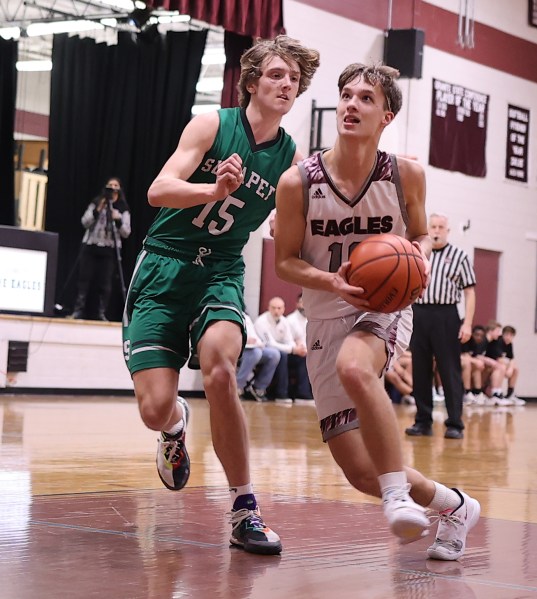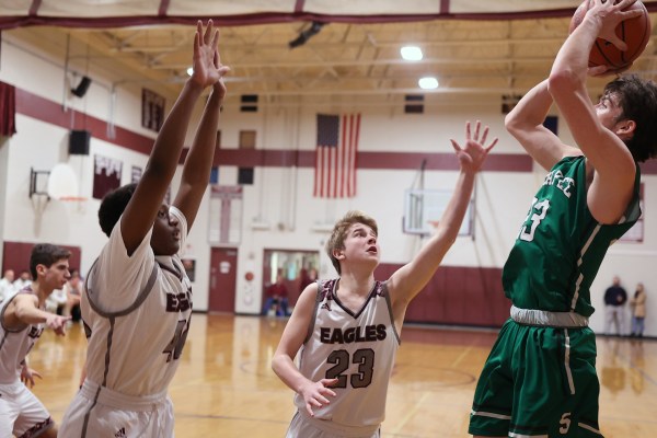 Consecutive three’s by Jason Stockbower (20 points) and Connor Hickey gave the Eagles the lead. Gavin Nagy (14 points) and Seth Huggard (14 points) followed with successful drives to the basket.