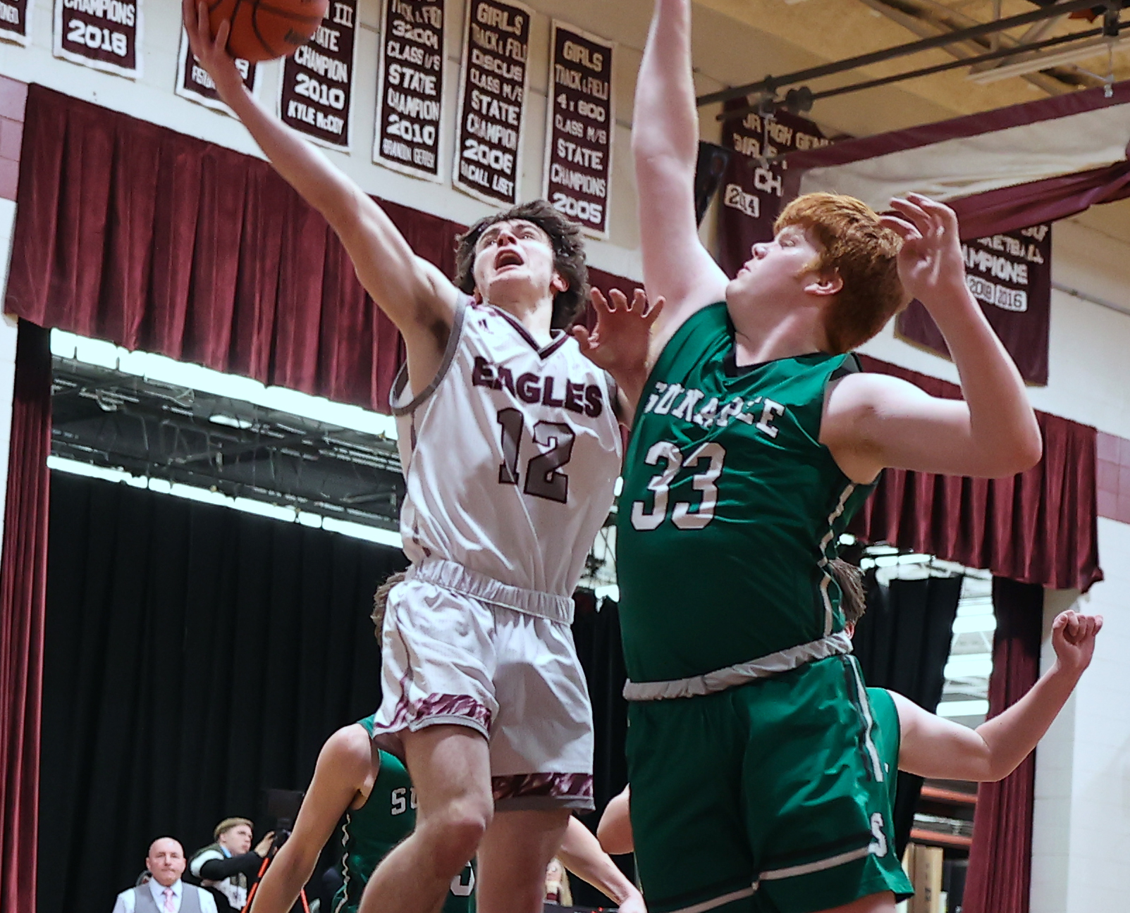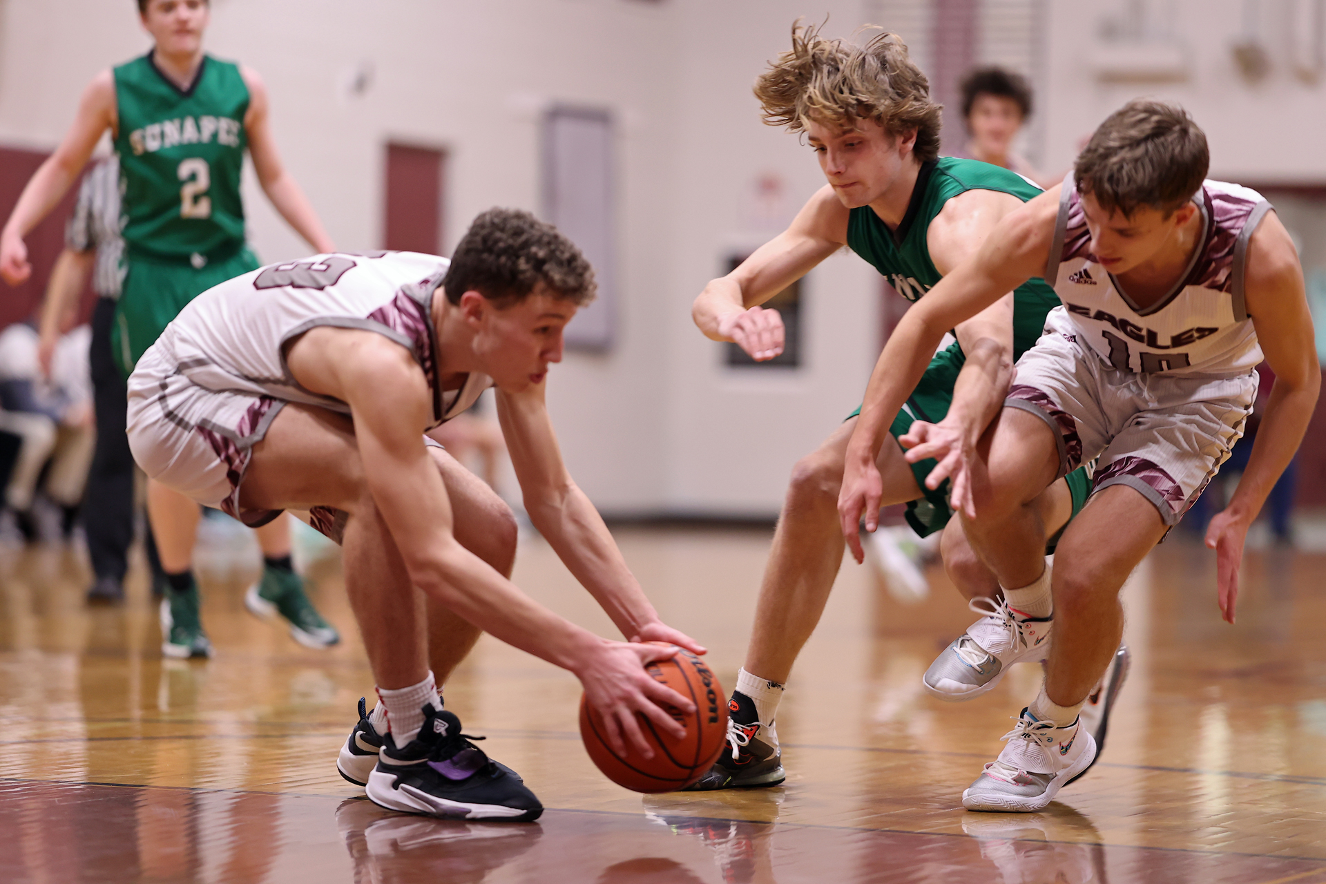 Consecutive three’s by Jason Stockbower (20 points) and Connor Hickey gave the Eagles the lead. Gavin Nagy (14 points) and Seth Huggard (14 points) followed with successful drives to the basket.