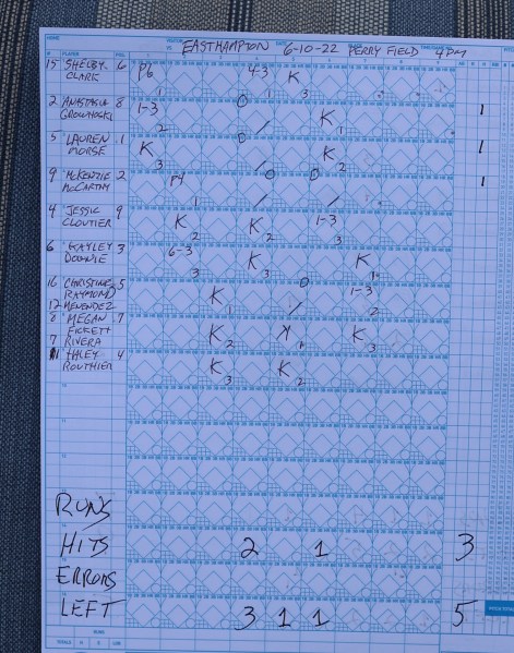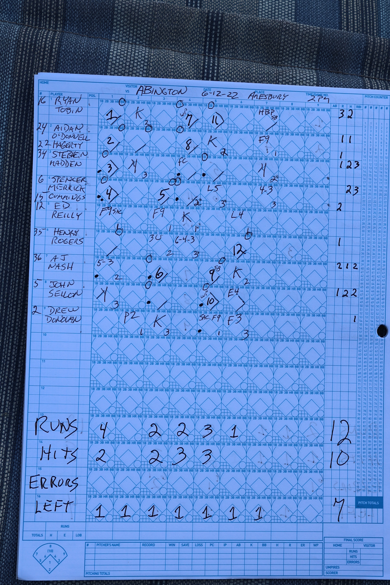 An interesting play occurred in the Newburyport fifth inning. Connor Stick tried to steal second and was ruled safe by the infield umpire. Then it looked like that umpire deferred to the home-plate umpire who then called Connor out to end the inning. Luke Stallard was the batter at the plate when the Connor-incident occurred. The next inning, Luke did not lead off. My assumption is that Luke was called out on strikes before the play at second happened. Most of the media coverage had winning pitcher Jack Iannibelli with nine strikeouts. That one would have given him ten.