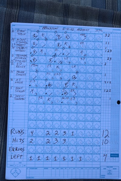 (I have since learned that the batter, Luke Stallard, was declared out because of “batter interference.” It means he got in the way of the catcher as he tried to throw out Connor Stick attempting to steal second base. AP pitcher Jack Iannibelli ends up with nine strikeouts, not the ten I assumed.)