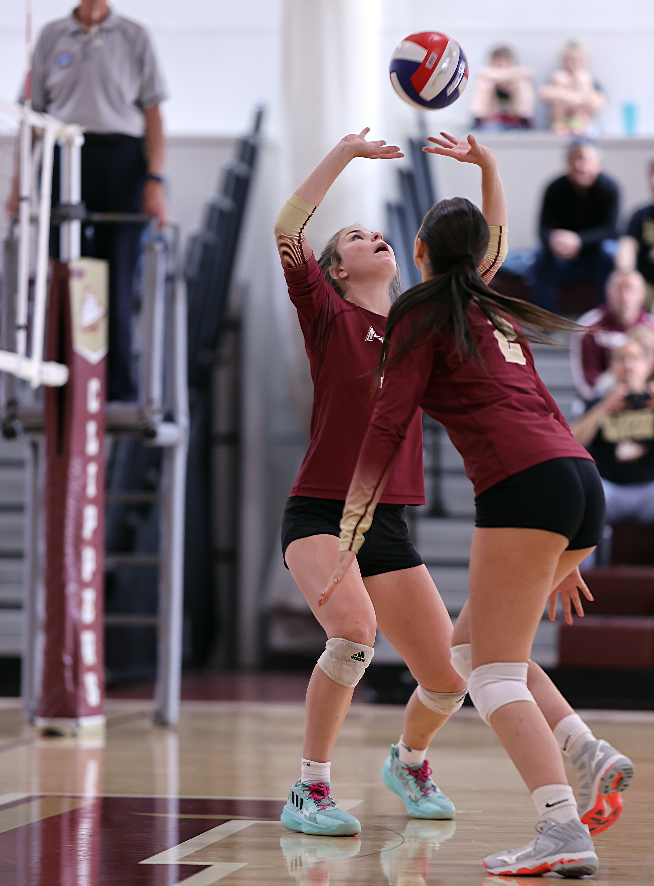 Senior Sophie Messina paced the Clippers with eleven kills and five blocks that converted into points.