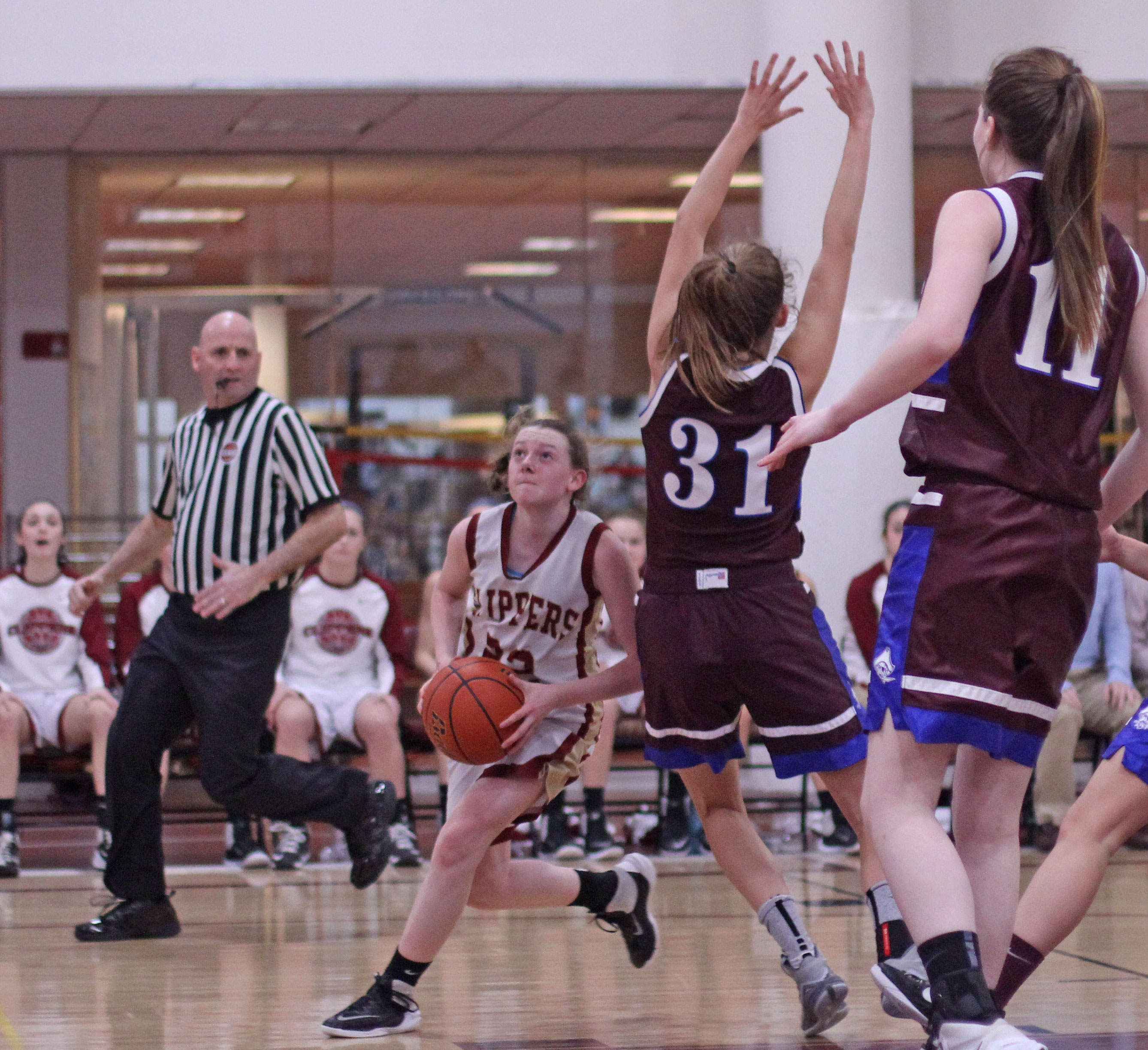 The Clippers tied the score (16-16) on a driving layup by freshman Anna Hickman (14 points) with 3 ½ to go in the second period.