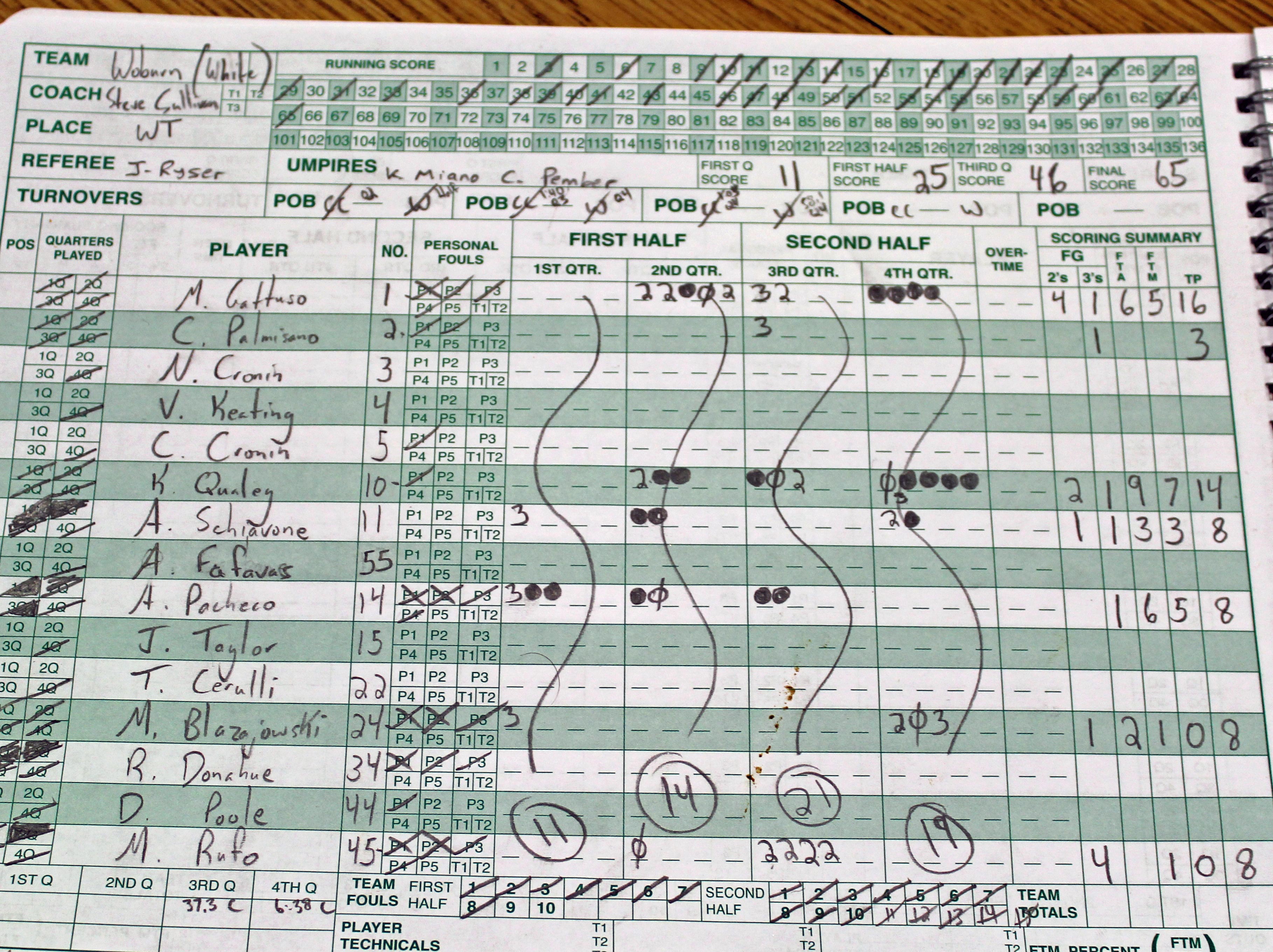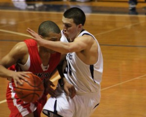 Both teams played man-to-man defense full-court. Two normally productive point scorers Stephen Haladyna (4 points) and Evan Sheehan (2 points) were held in check by their defenders.