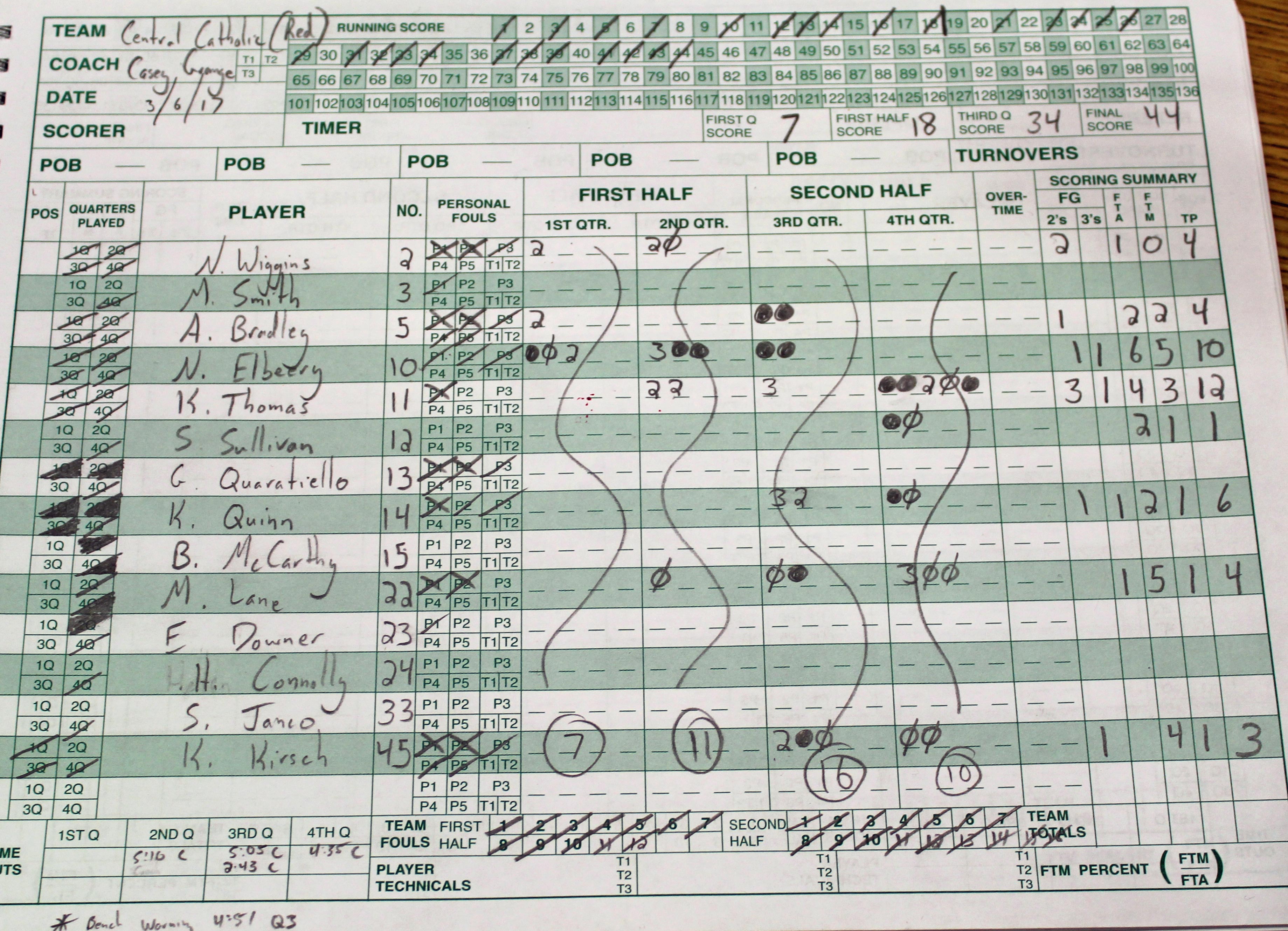 Jimmy Zenevitch (32 points) used his height (6-7) to get inside points. The lefty also made a three in the final quarter. The talented senior reached 1000 points in the third quarter. However, in a game this tight the Assumption recruit may well look back at his 3-for-10 from the foul line with some dismay.