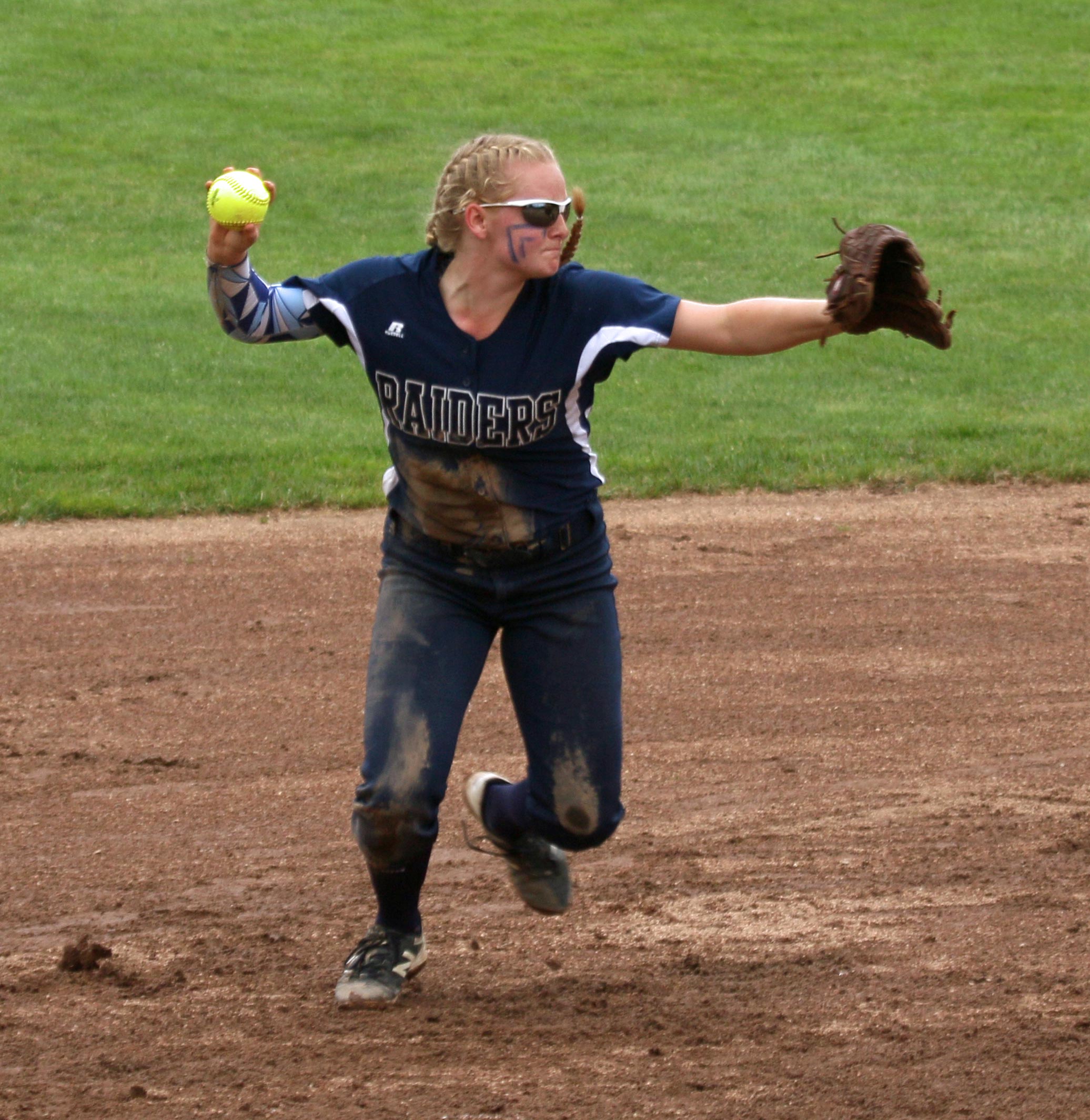 Shortstop Tina LeBlanc sets to throw to first base