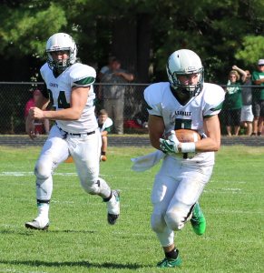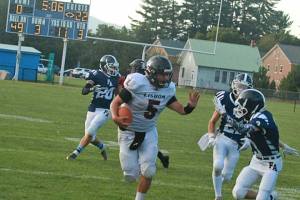 Fryeburg Academy sophomore Gunnar Saunders passed for two touchdowns and rushed for another.