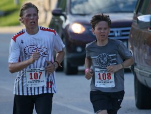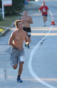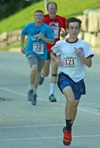 The first close race, from the Harrison Marina to the finish line in front of the Harrison Grange, was over fifth place. Sixteen-year-old David Landry came into view ahead of Glenn Gordon and Mark Hogan and was able to hold that spot.