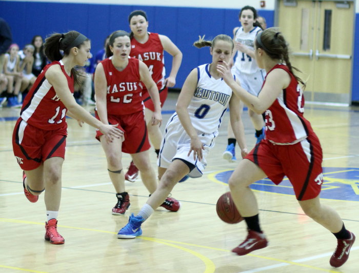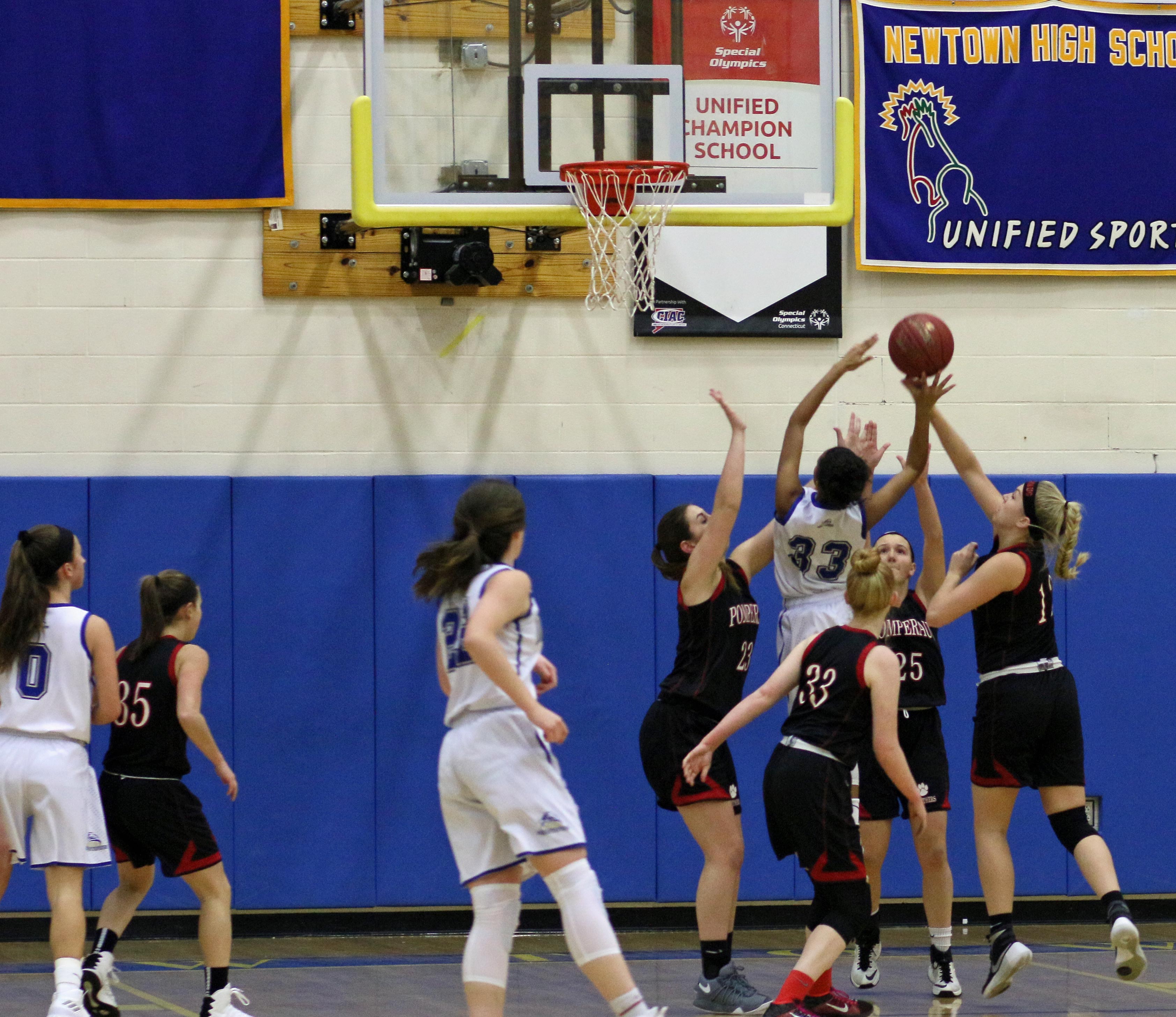 Both teams were held to their lowest point totals of the season. Newtown came into the Masuk game with four straight 40+ point games.