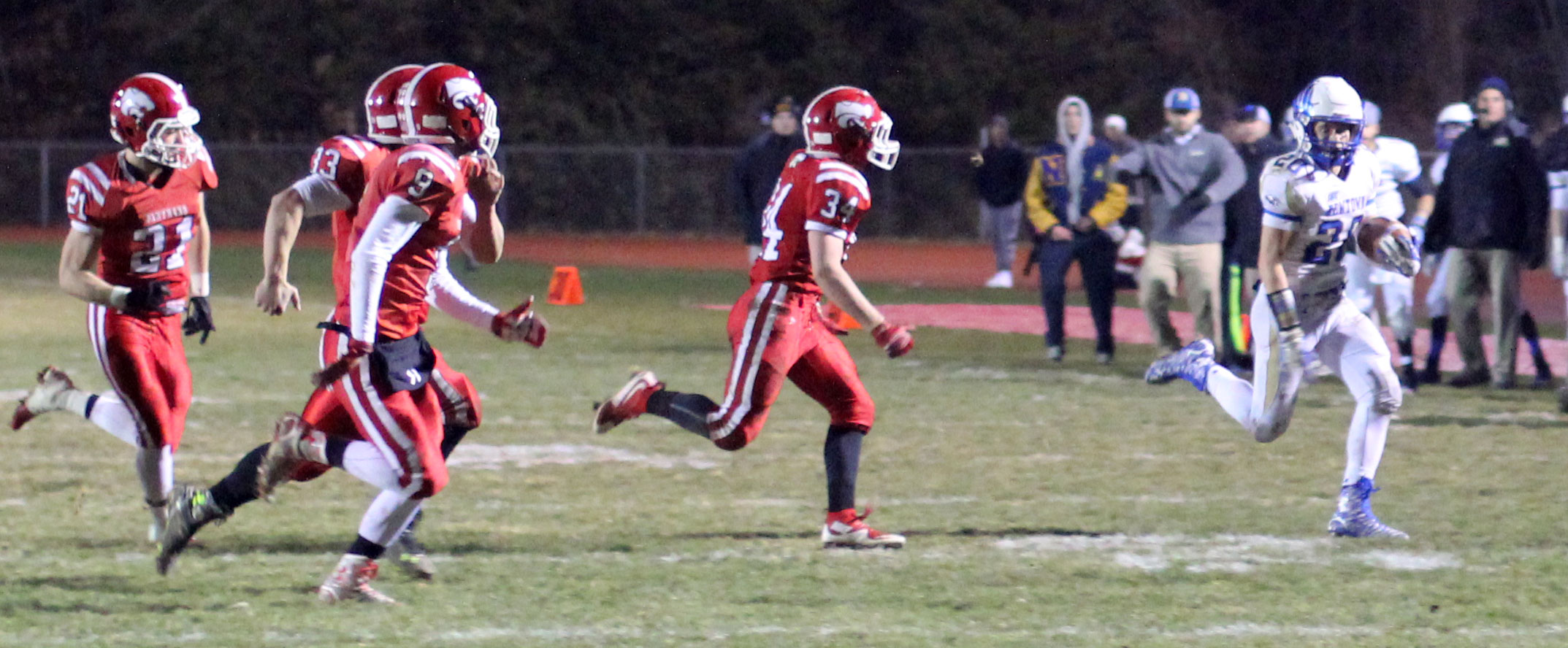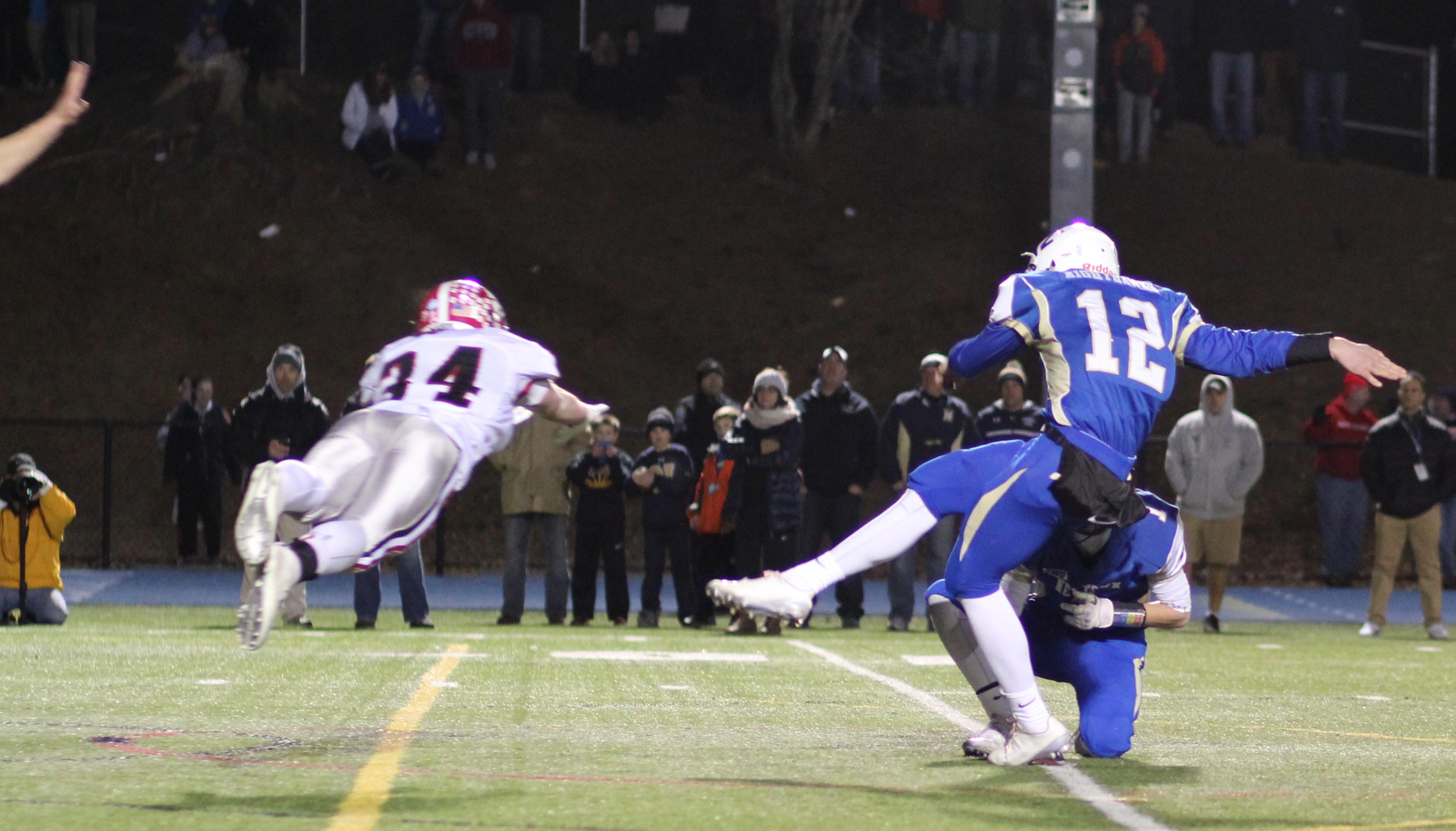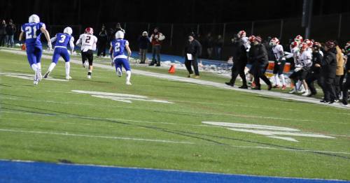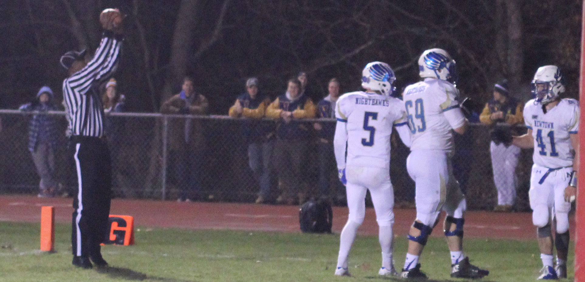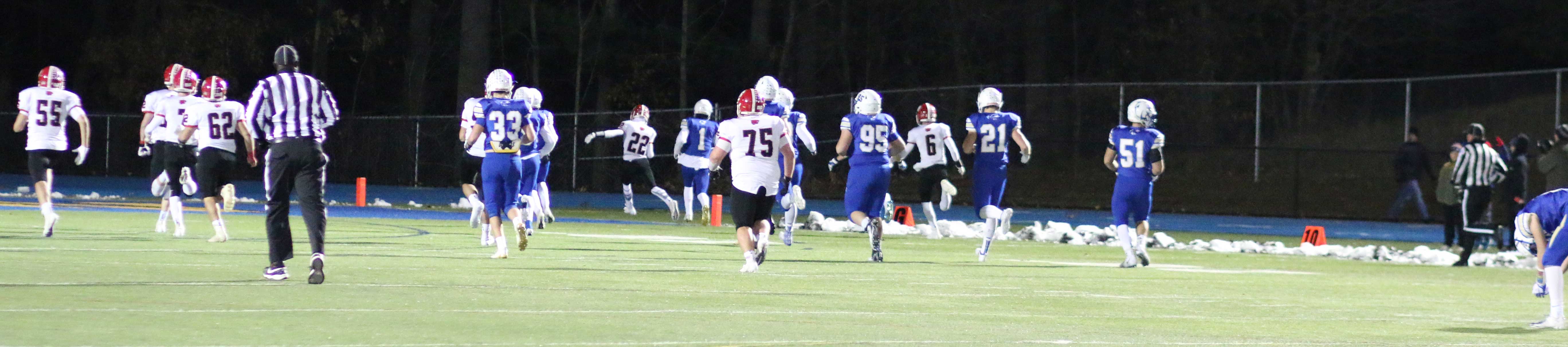 And it needed to be after a third-quarter bad snap resulted in a safety (5:03) as senior Colin Meropoulos dropped quarterback Jack Street in the end zone. The Newtown lead was now only 7-2 with seventeen minutes of playing time left.