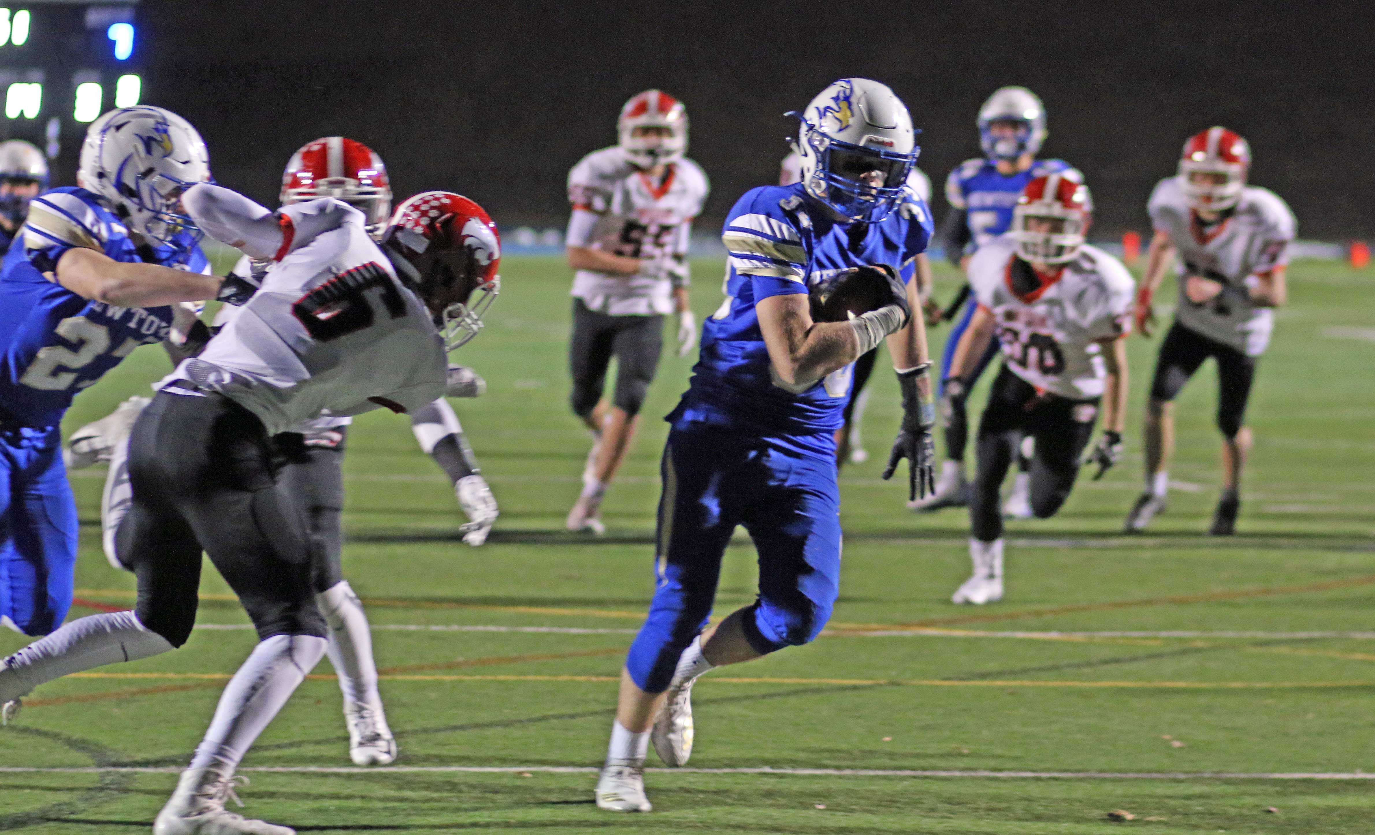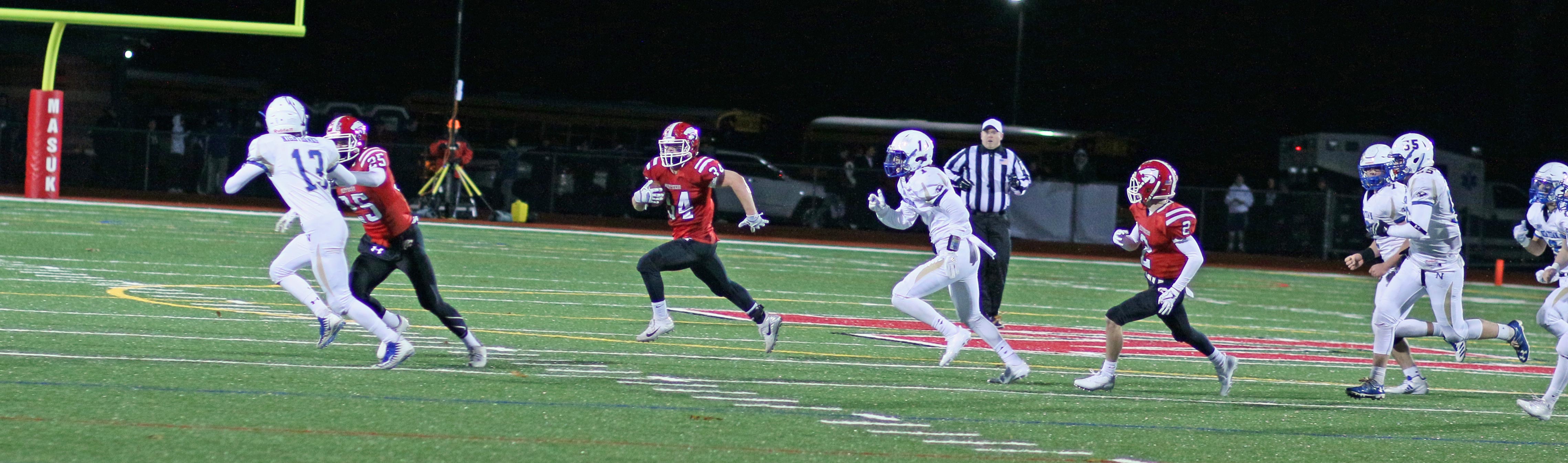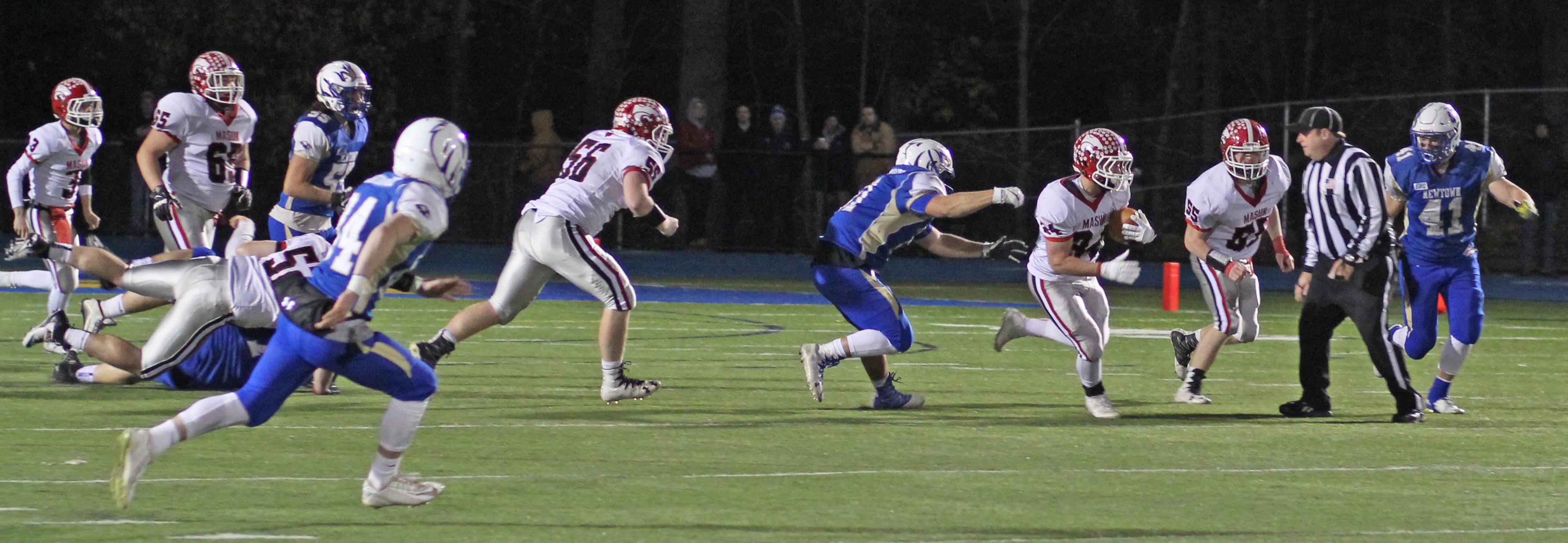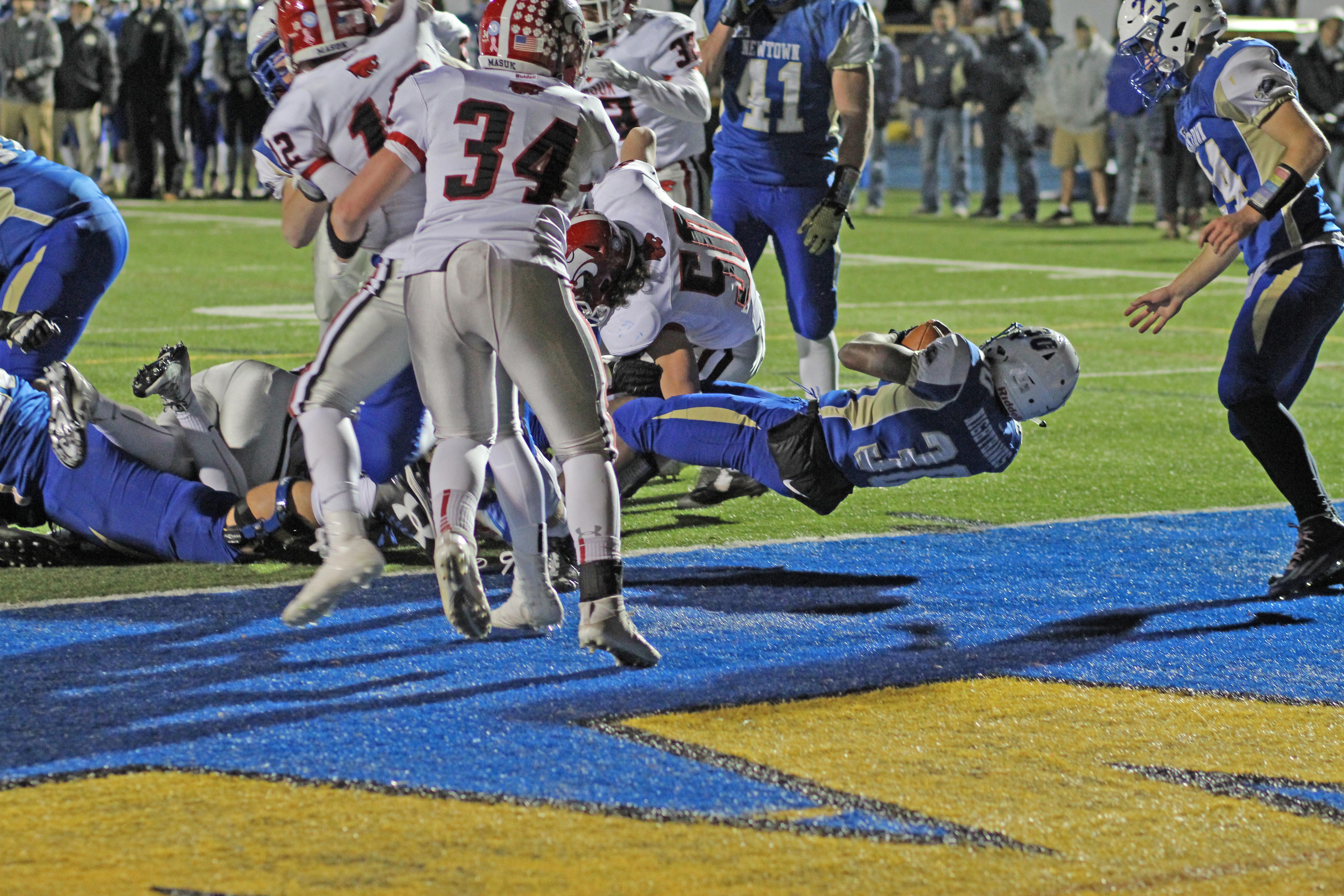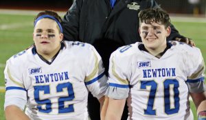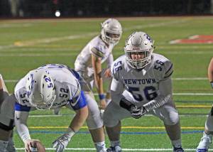 It certainly helped the Newtown rushing game to have fullback Jared Dunn (6-3/220) ushering Connor and teammate Luke Hannon on sweeps.