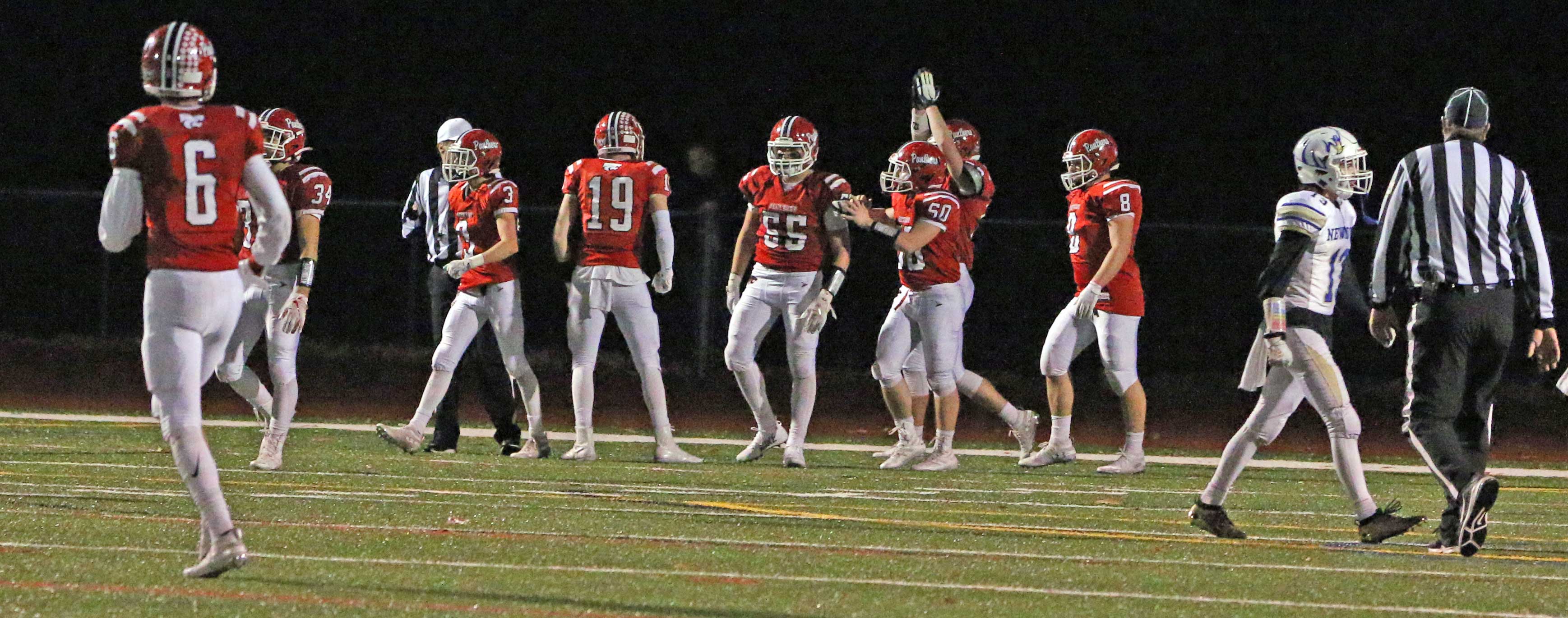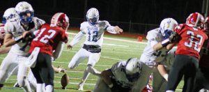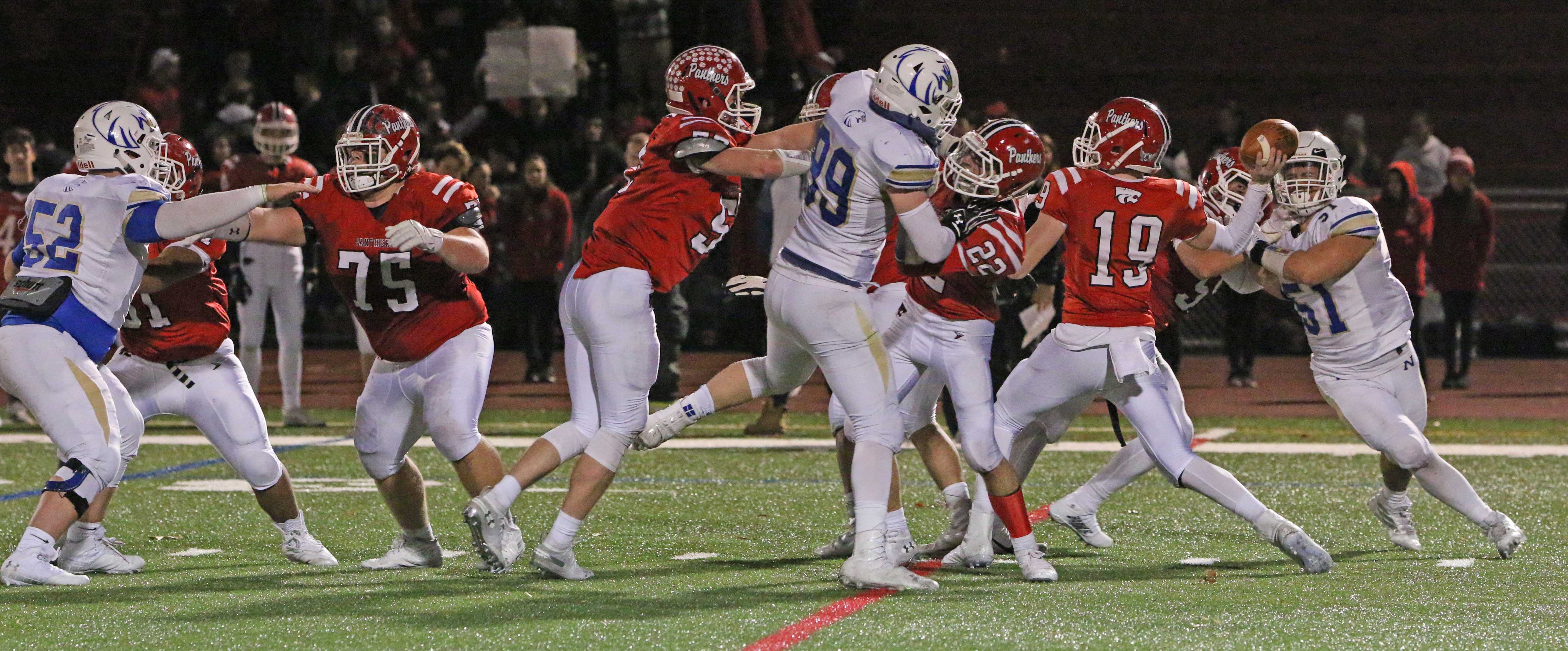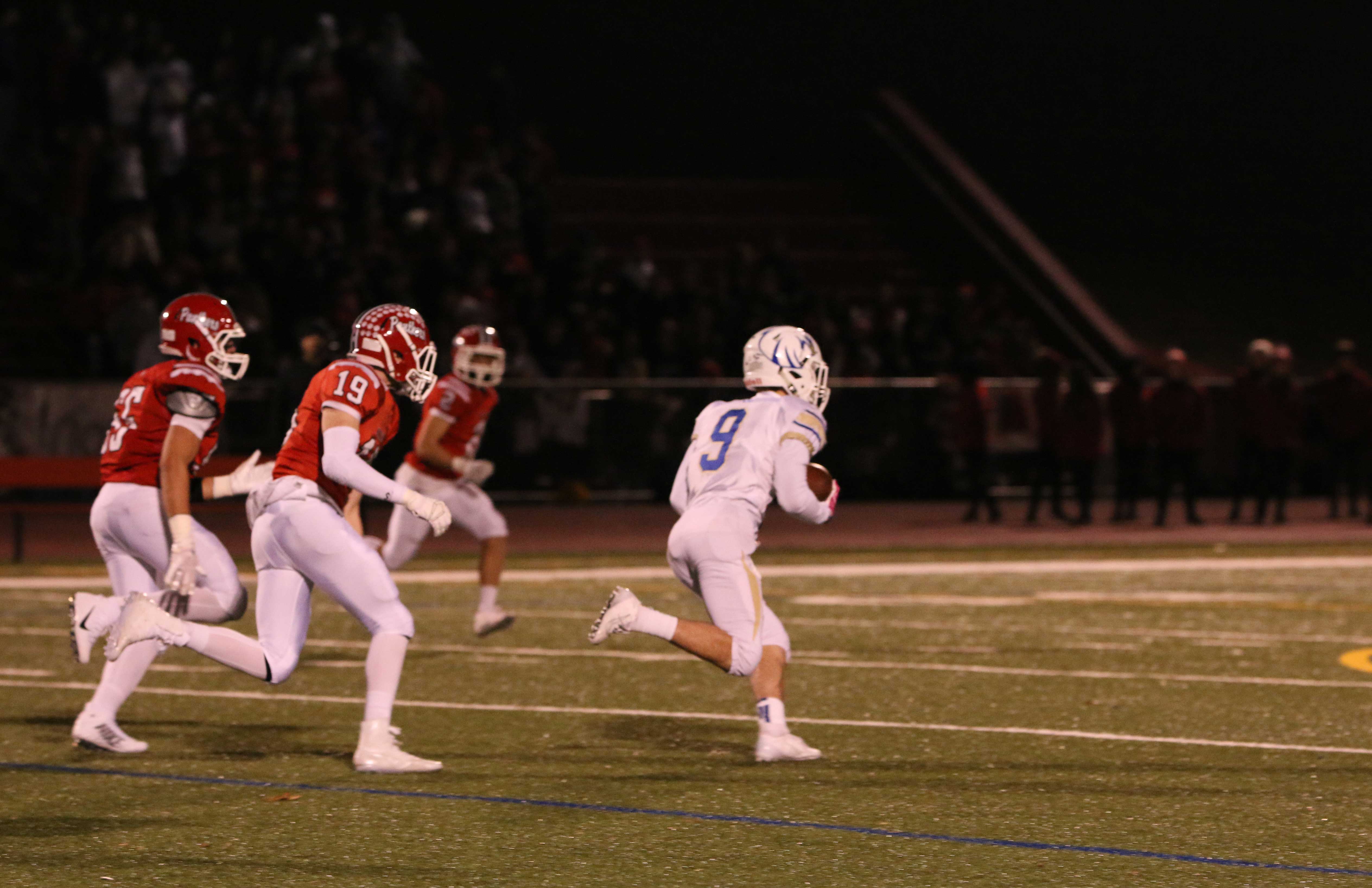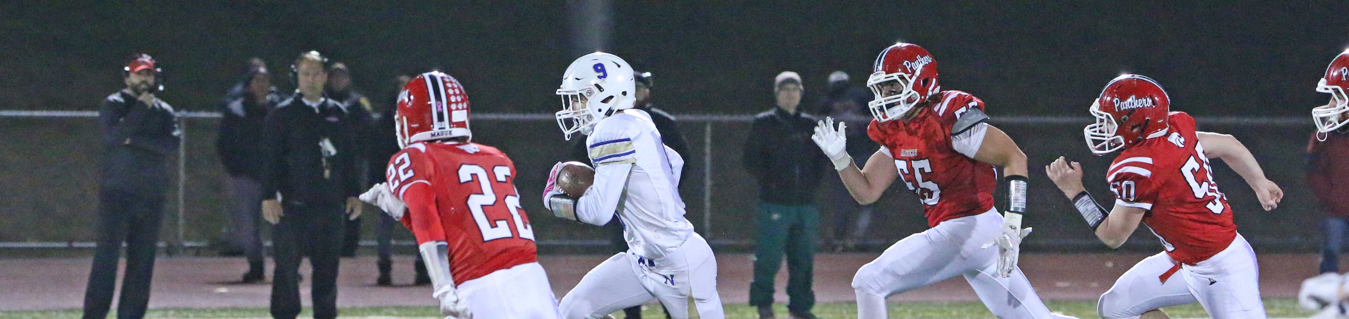 The Panthers lost starting quarterback Nick Saccu to an ankle injury late in the third quarter. The sophomore’s ability to run the Masuk offense was missed down the stretch. Nick was 15/21 for 211 yards and three touchdowns in the Panthers most recent game against Weston.