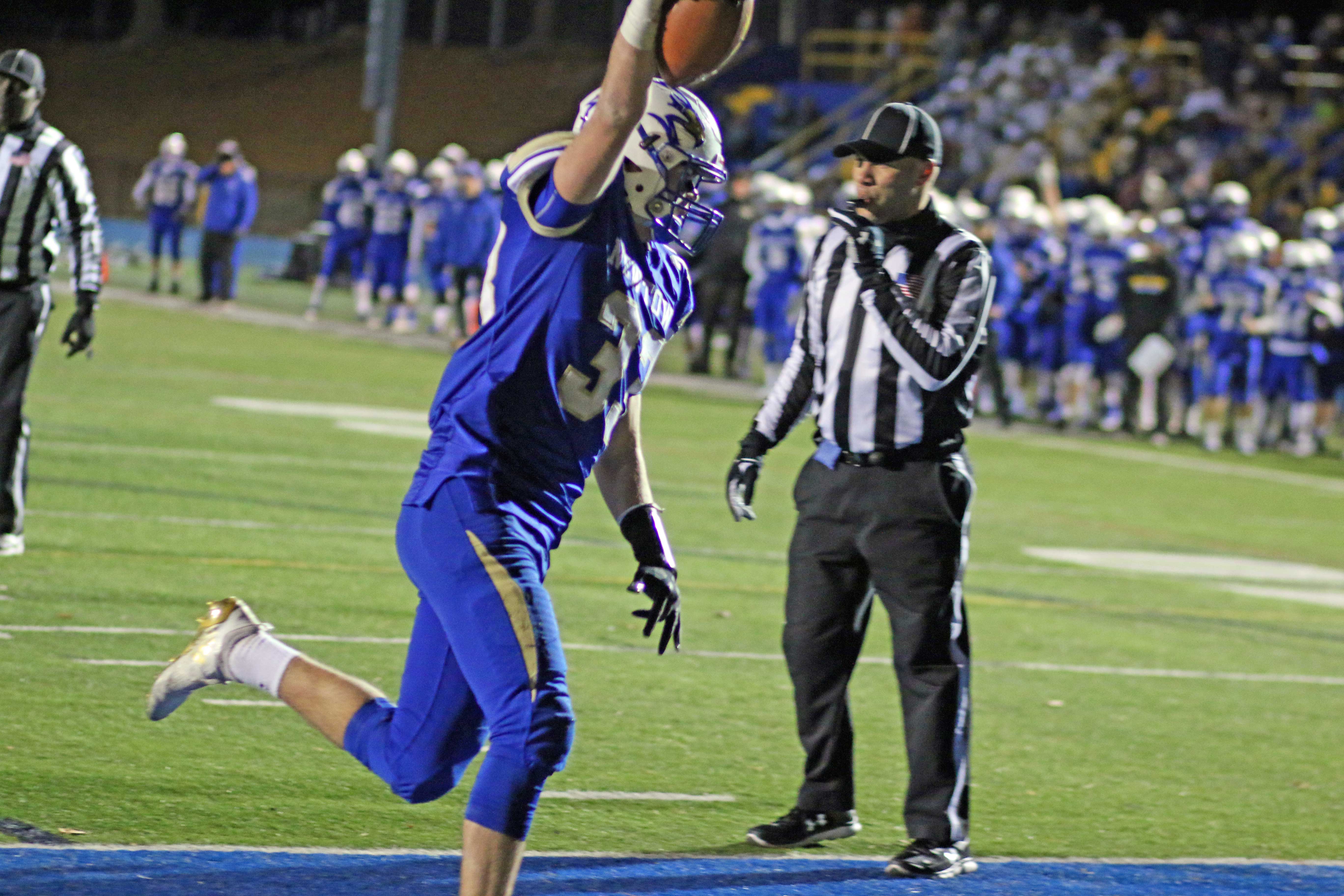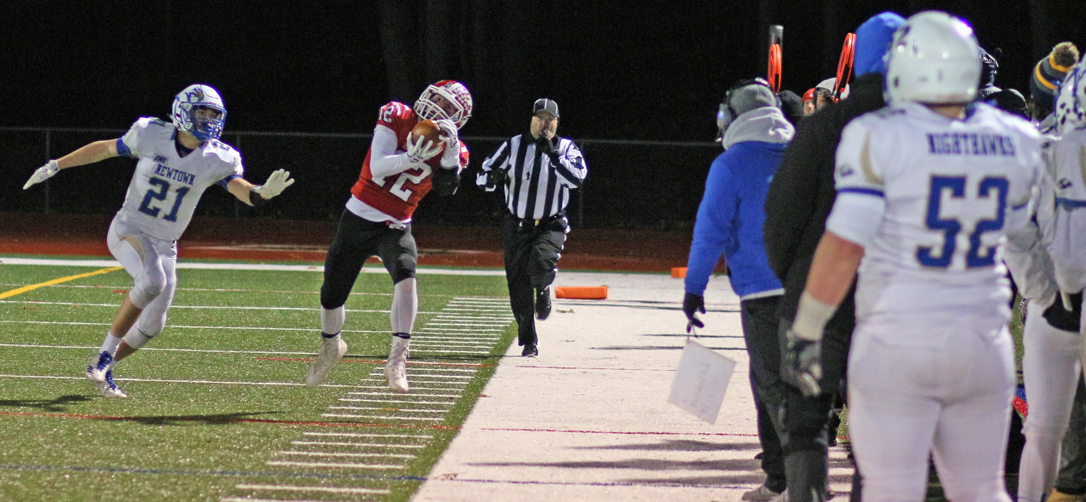 Jared (All-SWC 2018) made a nice catch in the first half and tallied Newtown’s final touchdown with a two-yard dive that barely broke the goal line plane.