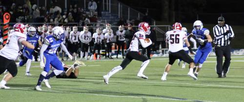 “We didn’t execute the way we wanted to in the first half, but we battled back,” said Hawk running back Connor Breslin. “We found ways to overcome obstacles. Our linemen are amazing. It’s easy to run with them up front.”
