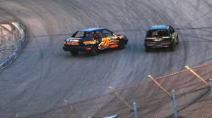 Eddie was nearly dead-last in the 43-car field at the start. But in a long race things happen. With thirty laps left of the 250 laps, Eddie was in second hounding leader Curtis Gerry. I started imagining that Eddie might pull this one out. It was not meant to be, however, and Eddie started to slide back.