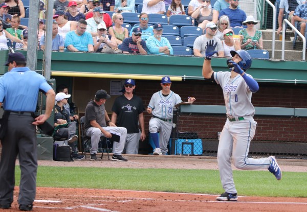 Josh’s solo homer was pulled down the right field line. Portland pitcher Matthew Gorst applied some body English to keep it foul, but it didn’t work. I overheard Josh in the dugout say that “it started out foul and then came back fair.”