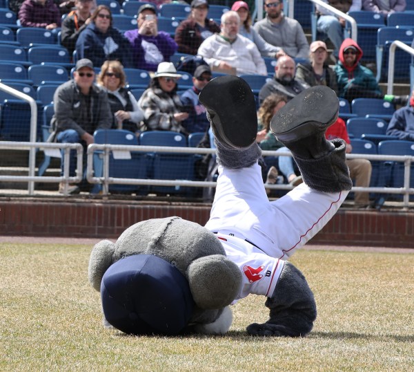 Slugger did himself no favors in his baserunning competition with a youngster when he tried to compete out of uniform. He was all gussied up with a top hat. He didn’t even get into his starting stance, so I knew he was done for. The most troubling part of today’s loss was that the opponent was in enemy (Fisher Cats) garb and never came close to touching third. Slugger didn’t catch the baserunning shortcut and took yet another defeat in his usual classy way. Maybe a video review will give the big guy today’s win?