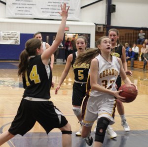 6-7” John McBride saw limited action because of foul trouble but still gathered fifteen rebounds. “Those fouls are what I get for being the biggest guy on the court,” he said laughing.