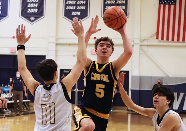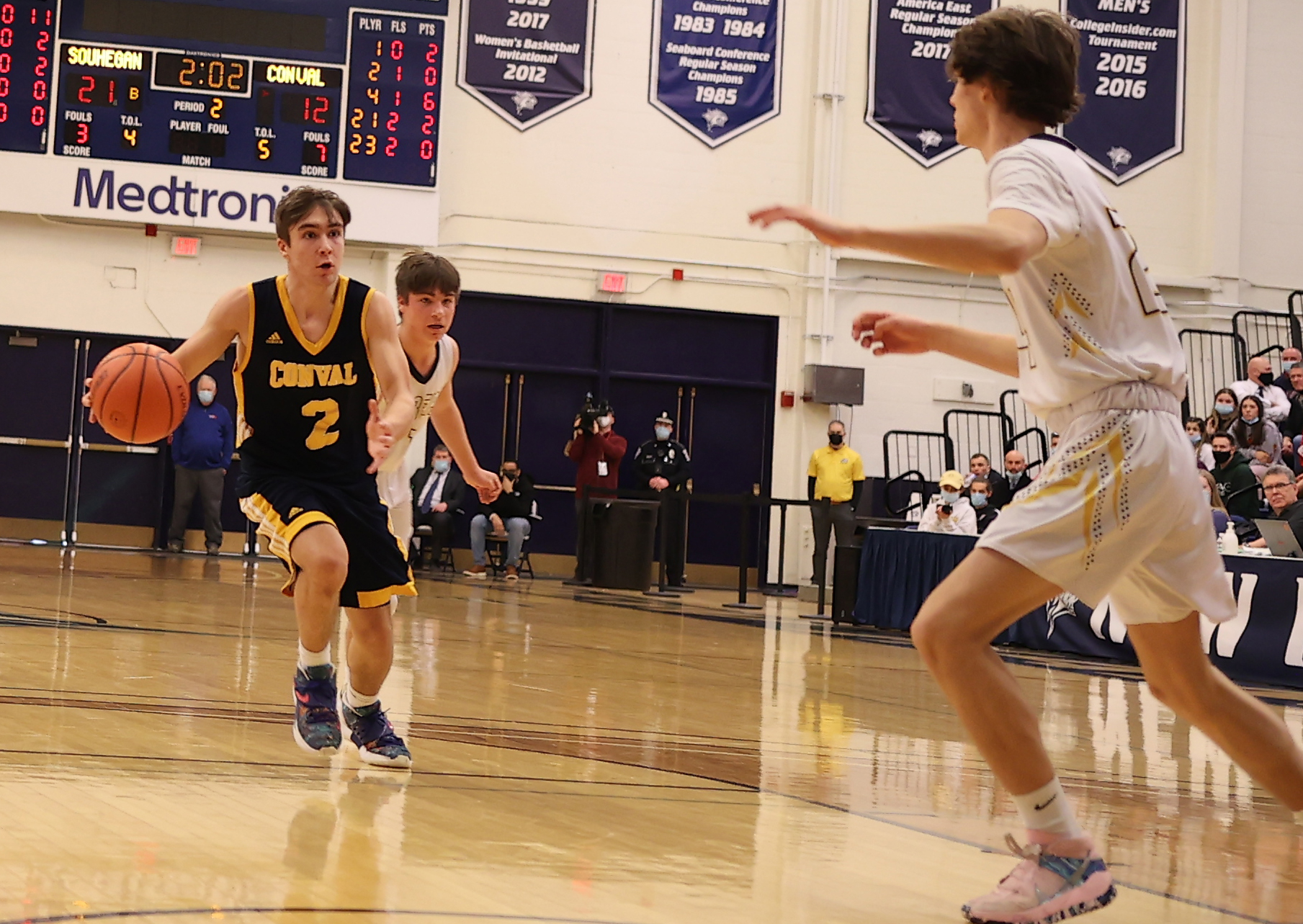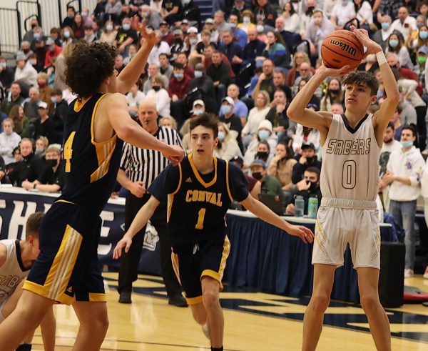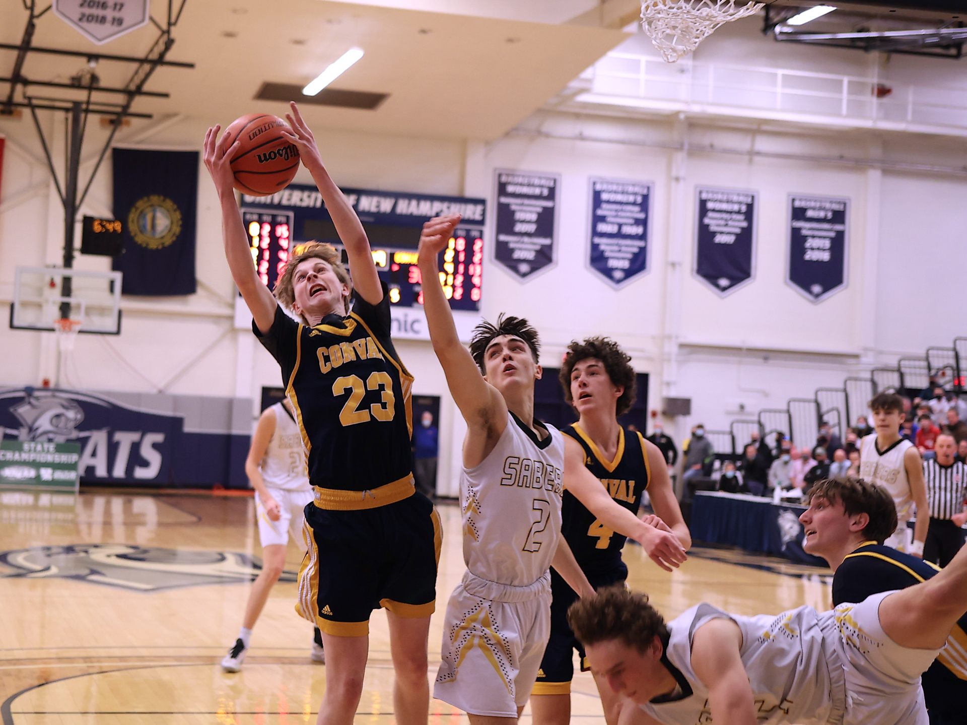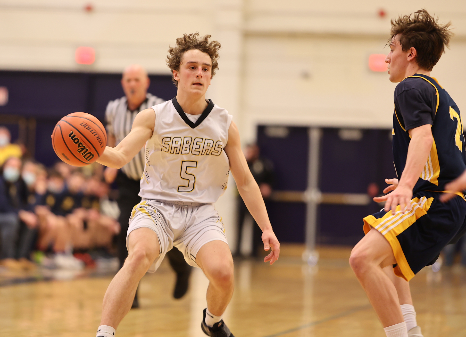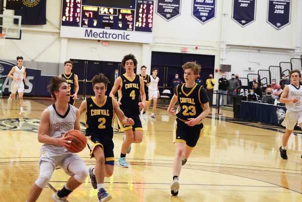 A steal by Nolan added a free-throw point and after another ConVal miss, Joe added two more freebies to extend the Souhegan lead to six points and seal the deal for the Sabers.