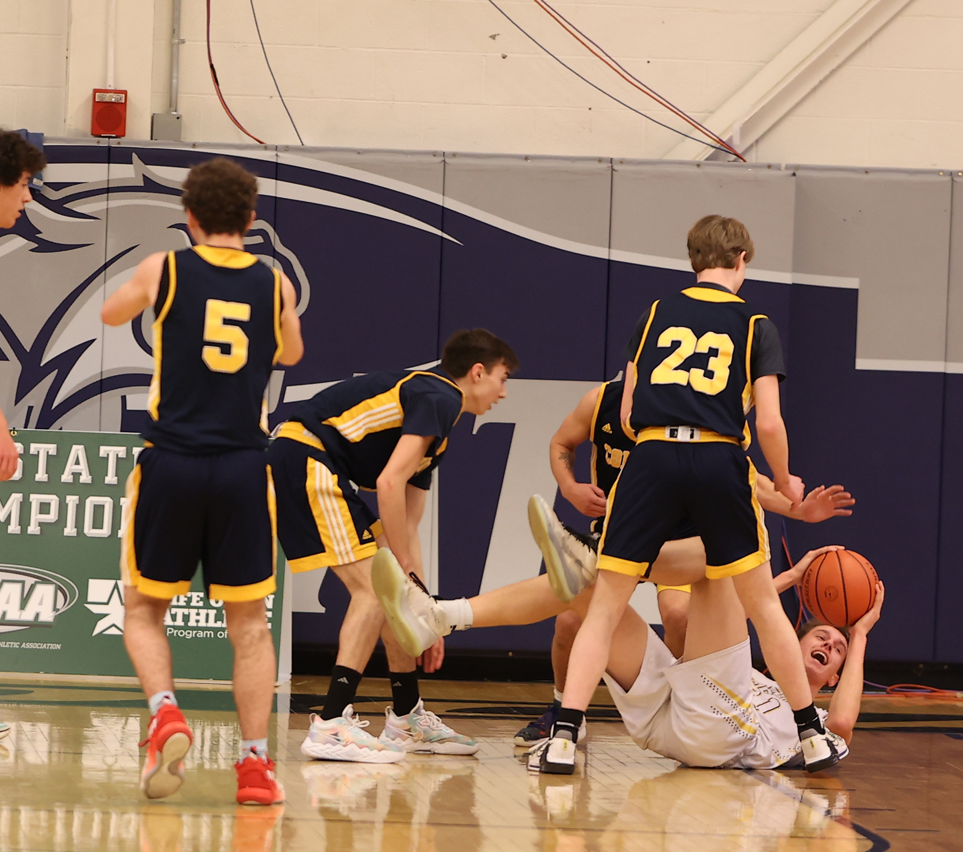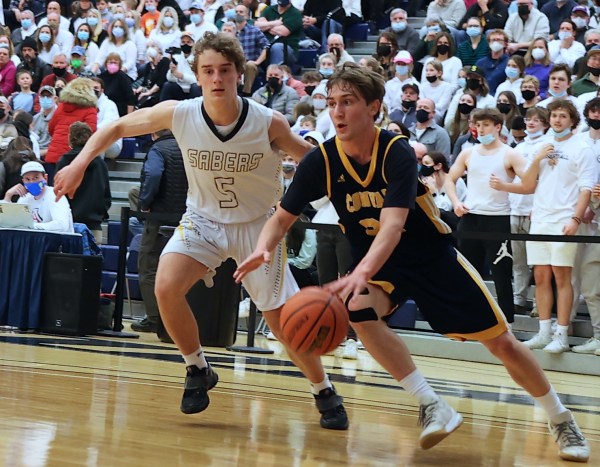 The Cougar’s Joe Gutwein (21 points) put in the clutch free throws with a minute left to set up overtime. Both teams had a possession after Joe’s free throws. Terrific defense by Malachi Page stopped a Sabers’ drive and Austin Knight nearly ended the game with a half-court rim-out at the buzzer.