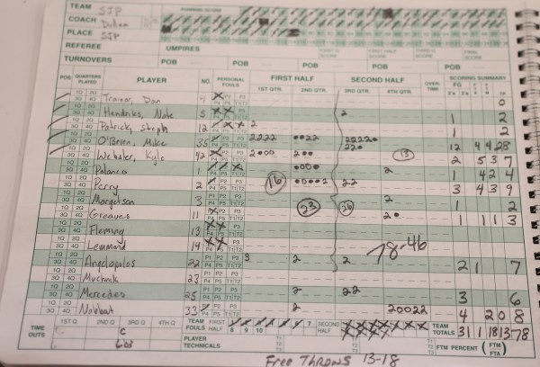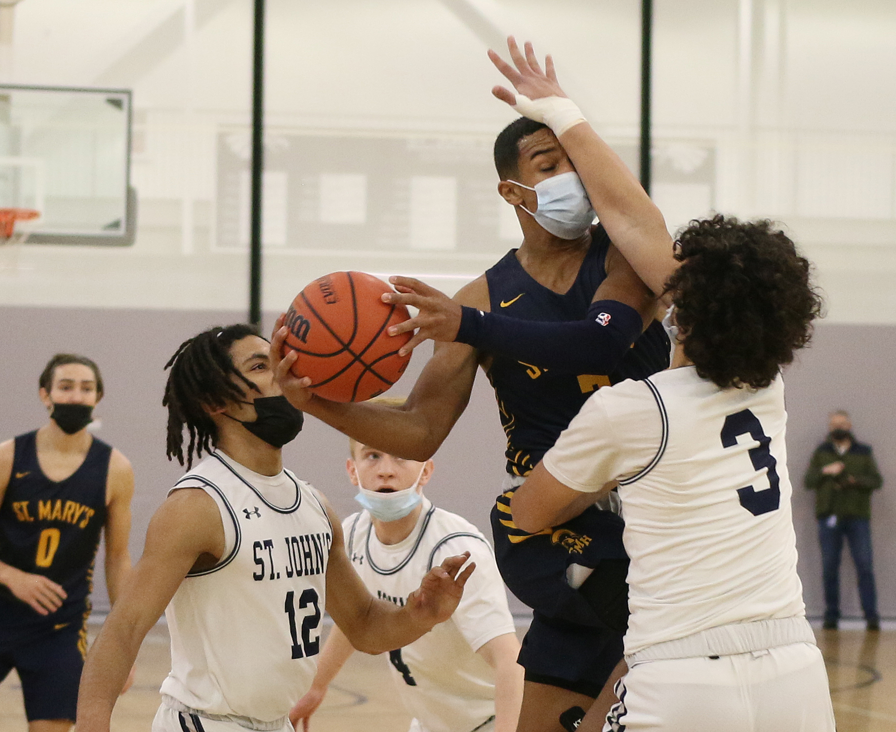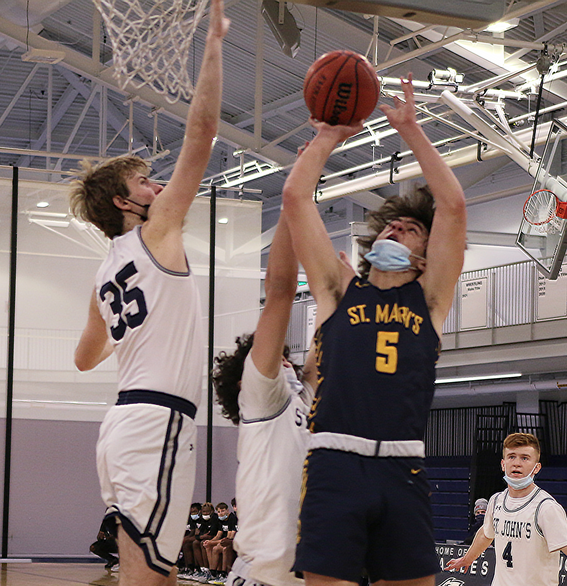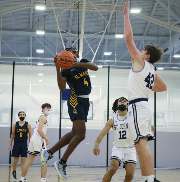 The final quarter was a convincing display of “Blessed are the merciful,” by St. John’s. Everyone played for both squads and the push for points (by the Eagles) was minimized. That’s good sportsmanship!