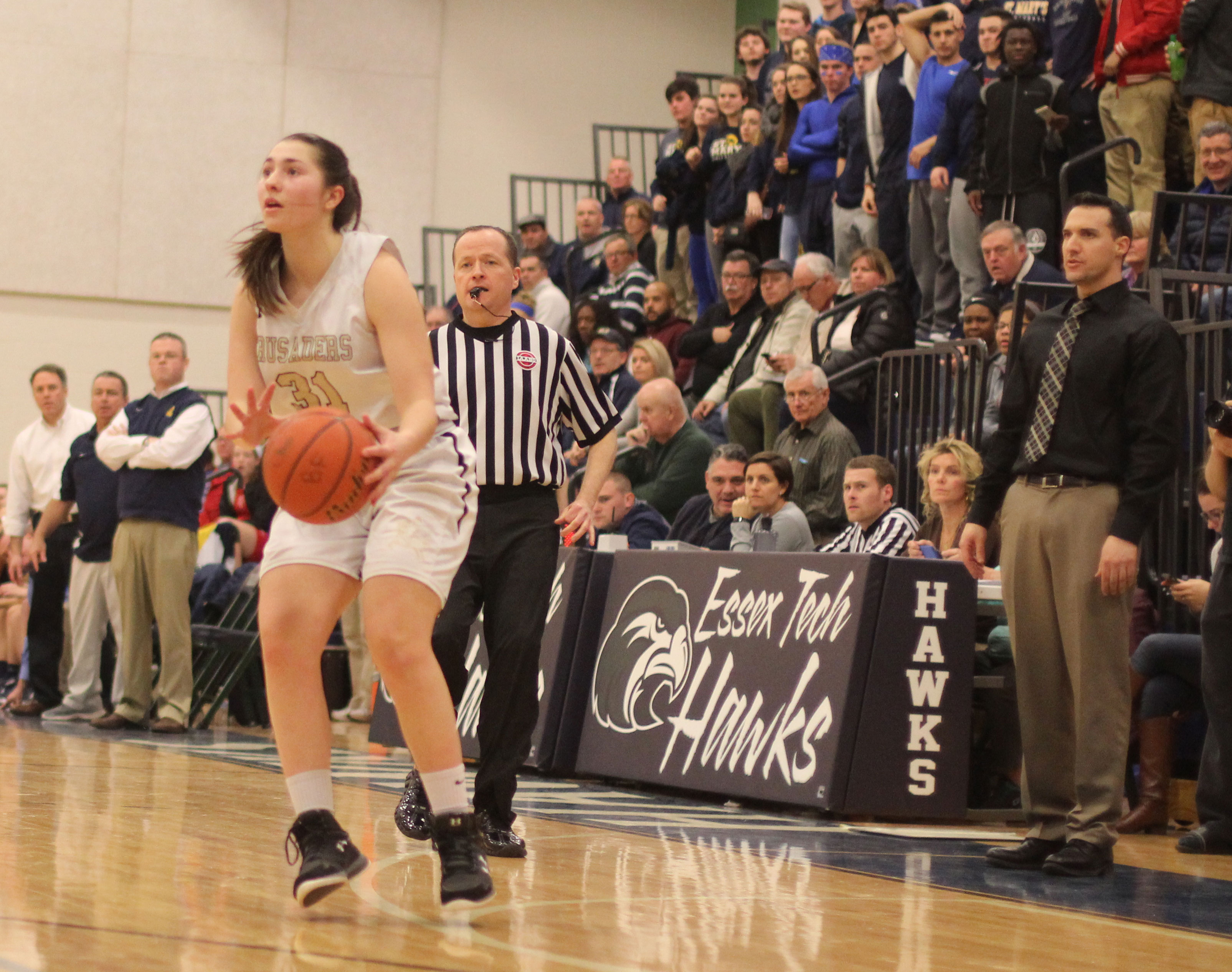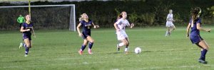 “We started off with two great chances in the second half,” said Coach Foley. One was off a free kick by Joslyn Deschenes and the other came when Kayla Demers got in close. Amesbury goalie Alli Napoli handled both advances.