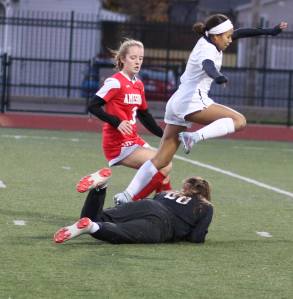 I was very impressed with defender Morgan Mackey in the first half. She prevented the speedy Indians from getting any breakaways.
