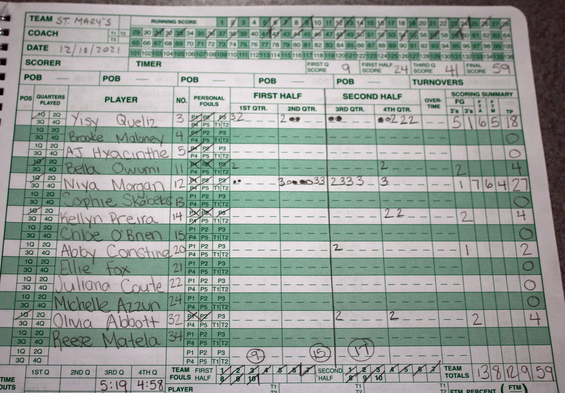 “We had a great first half, “recalled St. Mary’s coach Jim Foley.