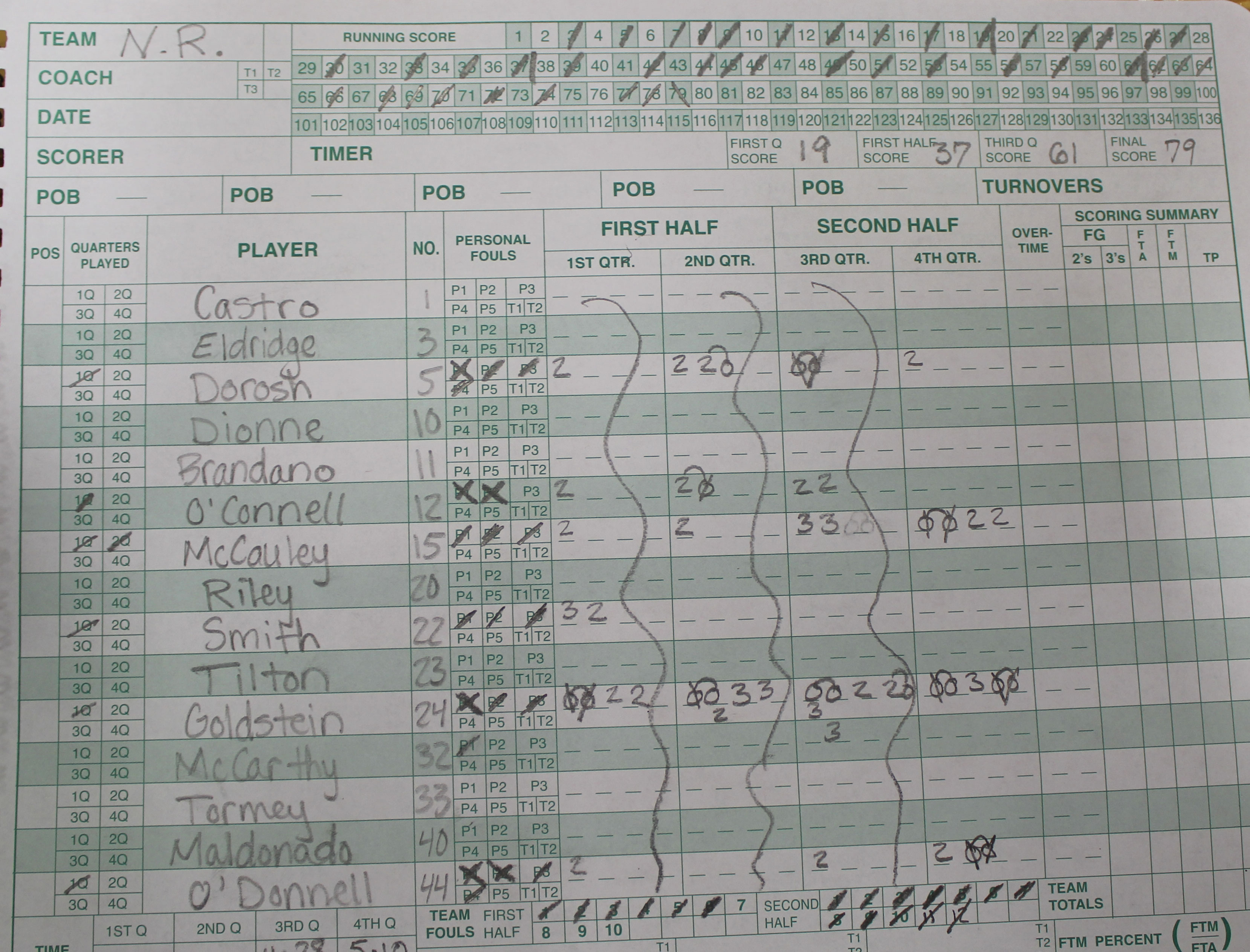 The NR lead reached eighteen (58-40) in the last two minutes of the third quarter.