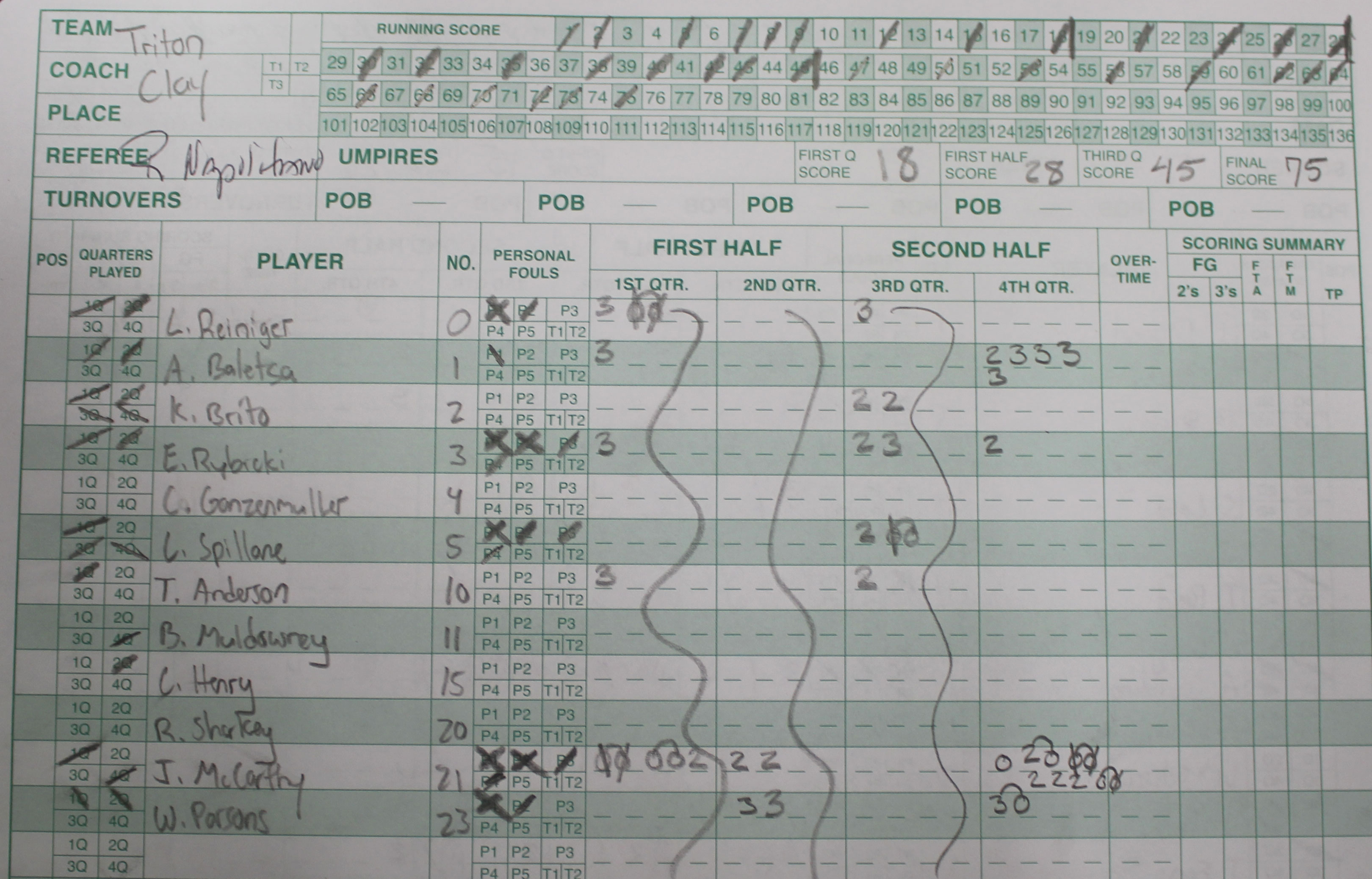 NR caught Triton not getting back on defense a number of times for easy shots. There also were several instances where the Hornets had wide open 3-pointers. Two of Adam Goldstein’s three’s were uncontested. That is what you call living dangerously on defense!