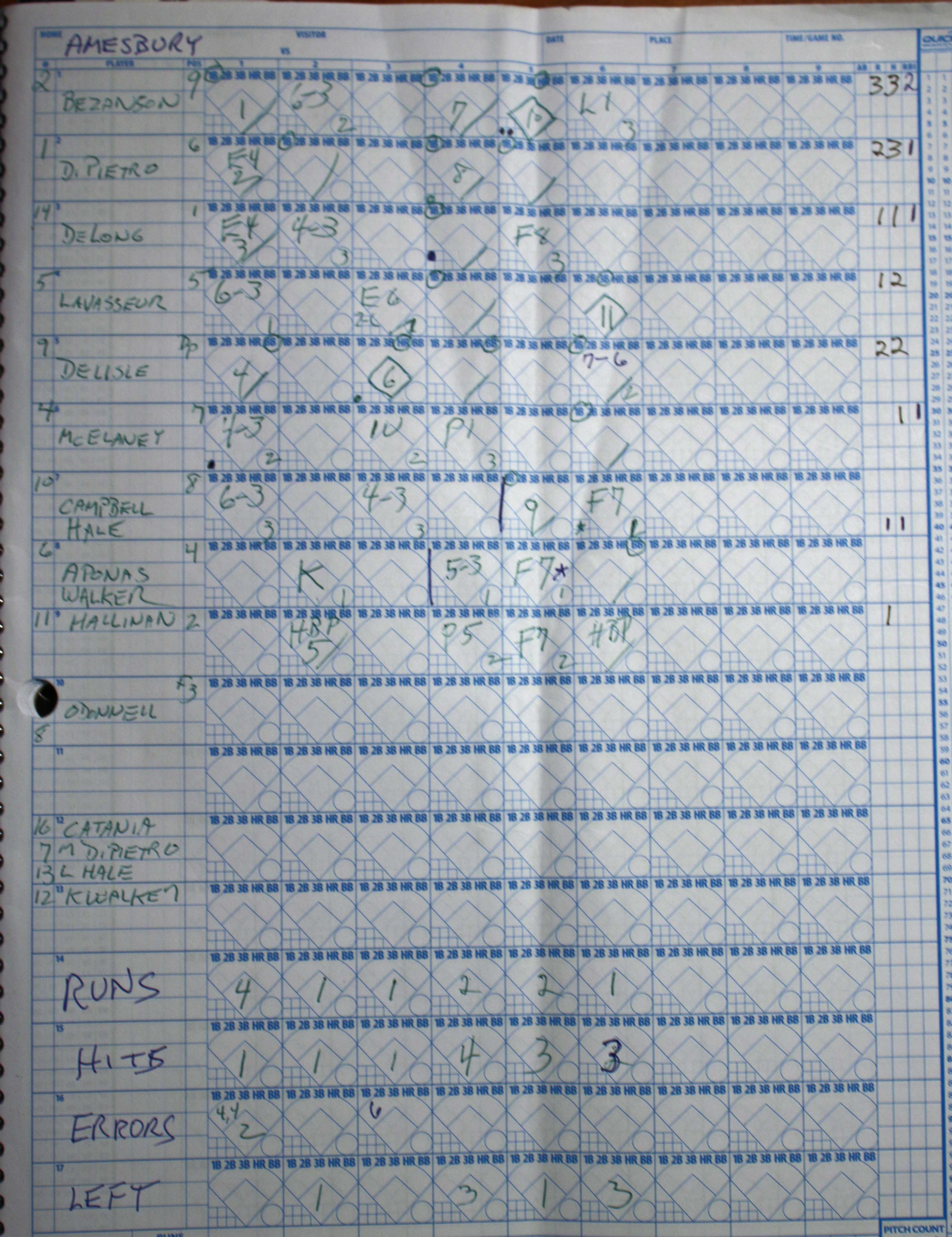 Amesbury’s most productive inning was the third in which fifteen batters came up and totaled nine runs on ten hits.