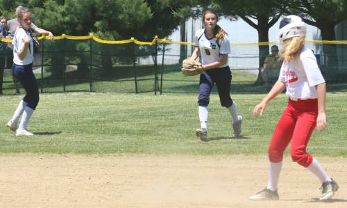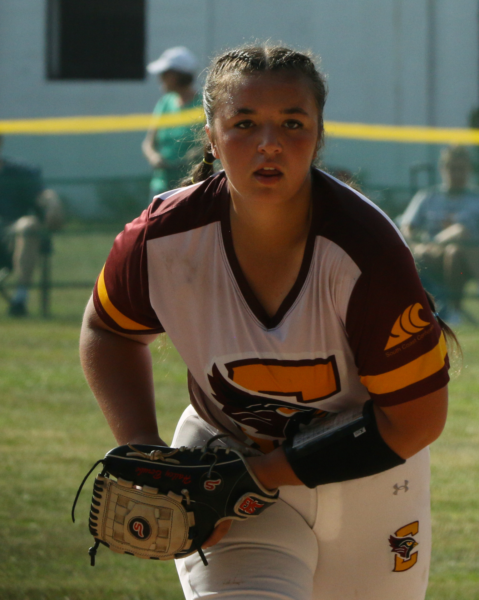 “I threw some curves today,” said Alana. “I did what Ella (her sister, the catcher) told me to do.” Alana also made a nice diving catch of a short popup between the mound and home plate.