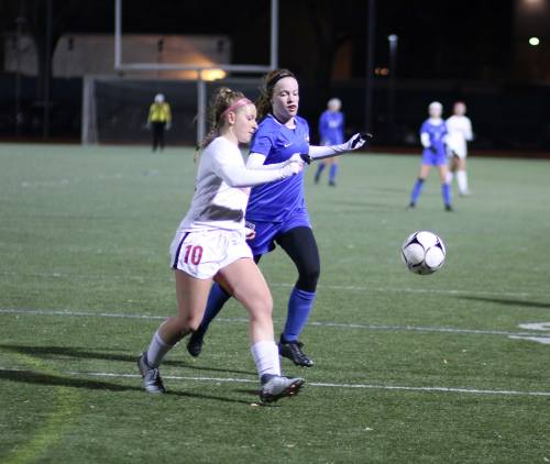 No surprise to Natick coach Dave Wainwright that Abby Gerdes would score such a huge goal: “Abby is just relentless in the box.  When she found it on her foot she knew exactly where she was going to go.  She’s done it all season.”