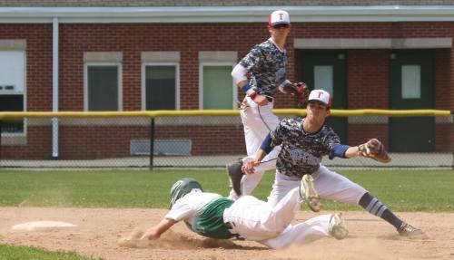 Two Pentucket errors (Kyle Stock & Gus Flaherty) enabled Tyler Godfrey to give Triton a 2-1 lead in their half of the third inning.